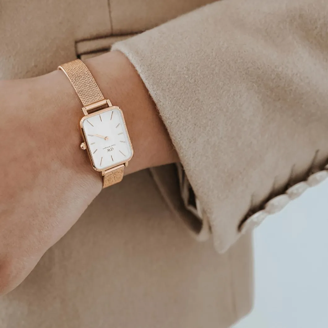Cette élégante Montre Femme Daniel Wellington Pressed Melrose – DW00100431 se distingue par sa finesse et son aspect luxueux. Son boîtier rectangulaire en acier couleur doré rose est complété par un bracelet en acier doré rose, accentuant son design chic. La montre est dotée d’un mouvement quartz et un verre minéral pour une grande durabilité. Avec une résistance à l’eau de 30 mètres et une boucle déployante pour plus de sécurité, cette montre est à la fois tendance et pratique. Mesurant 20 x 26 mm, elle se marie parfaitement à tout style.