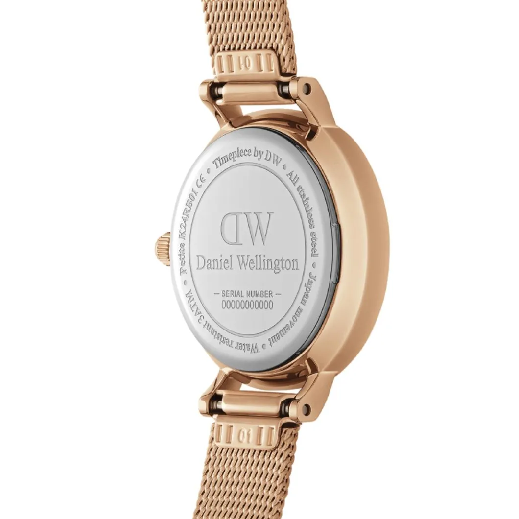 Cette élégante Montre Femme Daniel Wellington Pressed Melrose est dotée d’un bracelet et d’un boîtier en acier couleur doré rose. La montre, de type analogique, est alimentée par un mouvement quartz de qualité. Avec un diamètre de boîtier de 24 mm, elle est discrète et fine. Elle affiche une étanchéité jusqu’à 30 m, essentielle pour résister aux éclaboussures du quotidien. Notez la présence d’une boucle déployante pour une fermeture sécurité et aisée. Le verre minéral renforce sa robustesse.