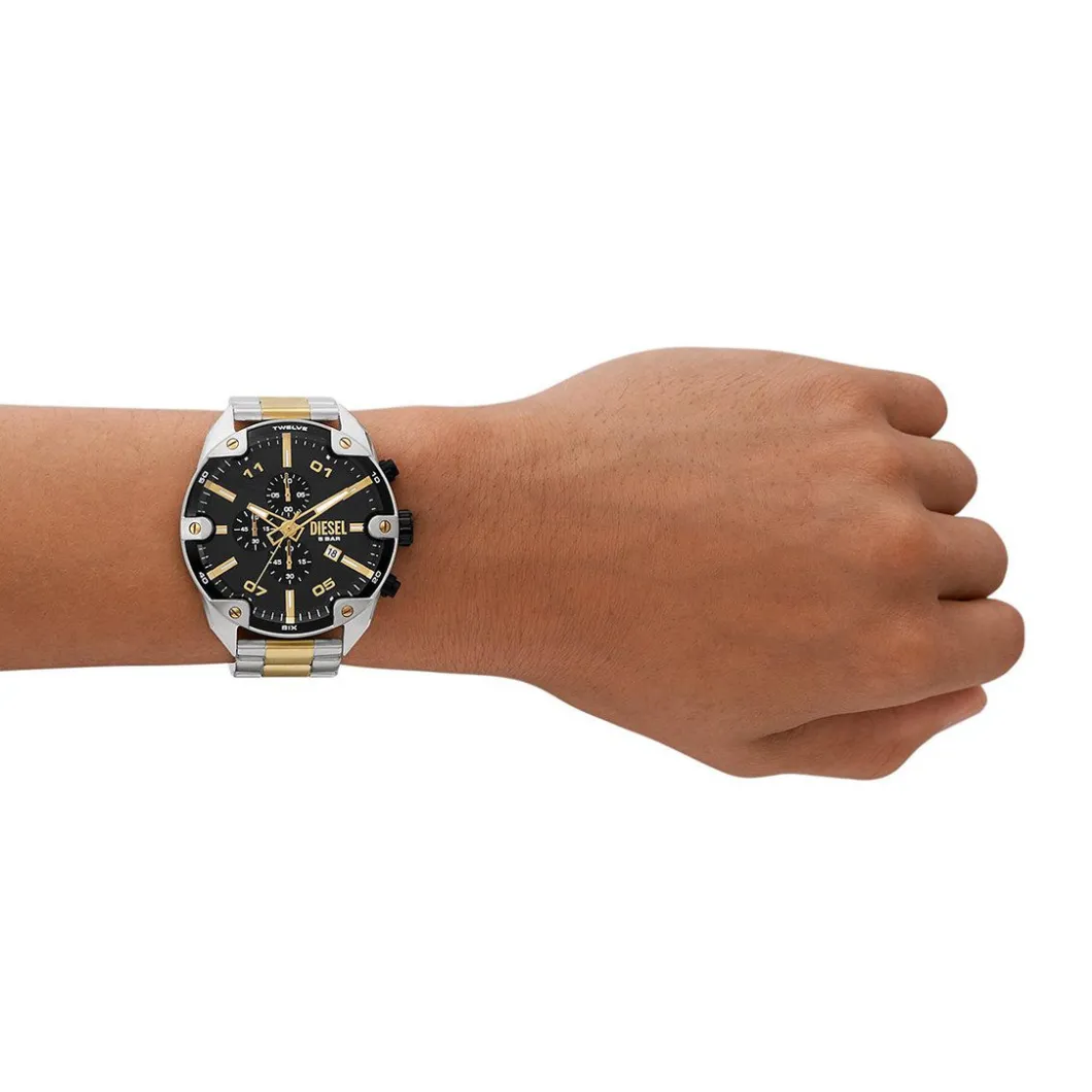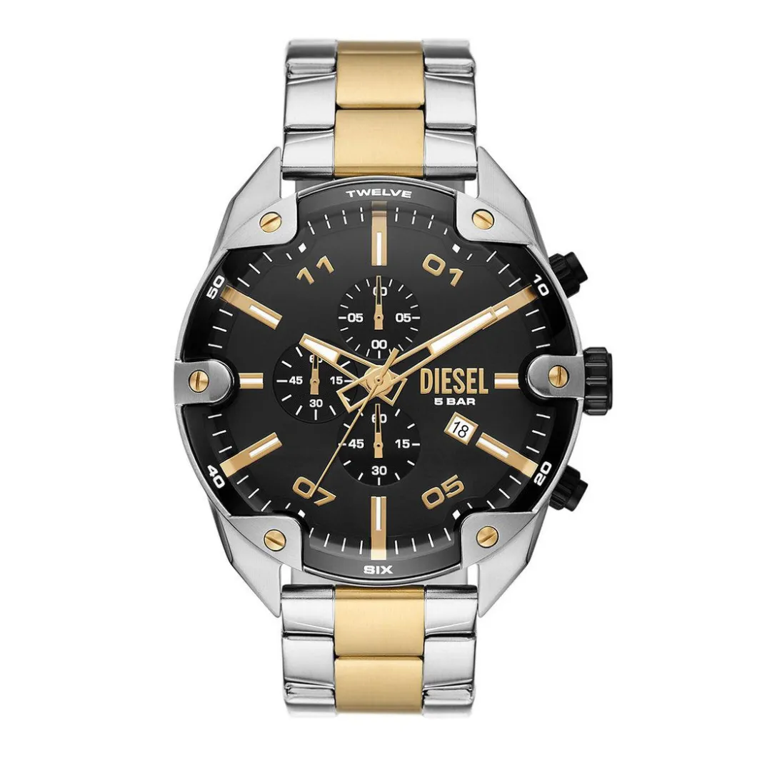 Une montre Diesel représente l’approche adoptée par Diesel : un mélange de différentes langues et matières, mais avec une mécanique robuste.