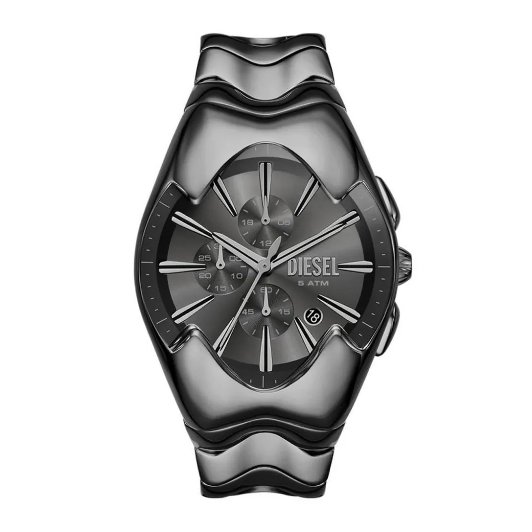 Une montre Diesel représente l’approche adoptée par Diesel : un mélange de différentes langues et matières, mais avec une mécanique robuste.