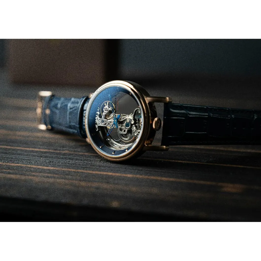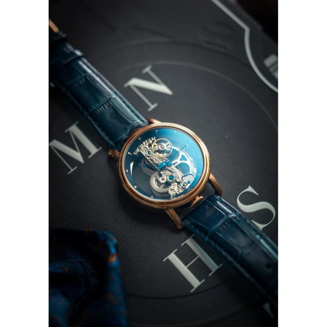 Comme un bijou d’exception, la Montre Homme ES-8225-06 – Earnshaw Fowler Bridge Skeleton Automatic captive le regard grâce à son boîtier de couleur doré rose. D’un diamètre de 43mm, il séduit par sa taille généreuse tout en gardant une discrétion appréciable. Quant au bracelet, sa largeur de 22mm assure une esthétique équilibrée et confortable. Ce modèle proves that sophistication doesn’t necessarily mean complexity, proudly and elegantly displaying the time .Vous allez sans nul doute être séduit par cet objet élégant et sobre.