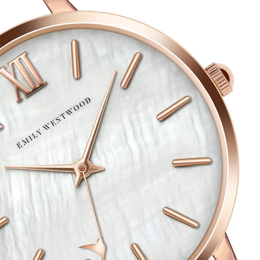 Avec ses touches de rose gold et son cadran blanc analogique, cette Montre EDQ-B029R Emily Westwood ne peut que plaire.