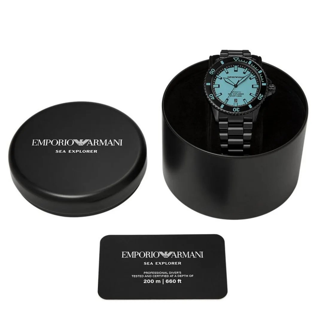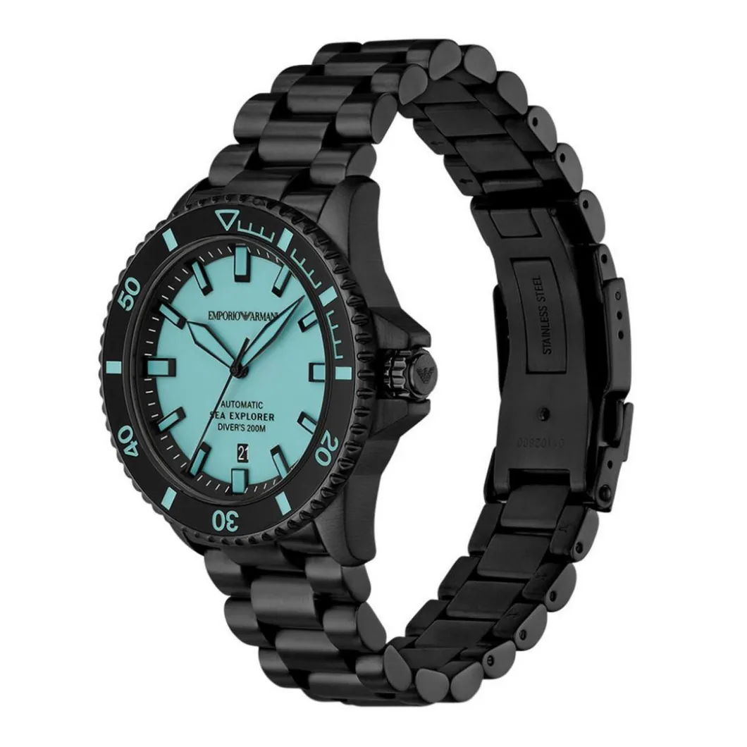 La Montre Homme Emporio Armani Sea Explorer – AR60084 Bracelet Acier Noir allie élégance et robustesse. Son boîtier rond de 43 mm est de couleur Noir, assorti au bracelet en acier inoxydable tressé de la même teinte. La montre offre une étanchéité exceptionnelle jusqu’à 200 mètres, idéale pour les aventuriers des profondeurs. Le mouvement automatique assure une précision inégalée tandis que le verre saphir confère au cadran une protection optimale. Elle offre une fonctionnalité de dateur, pratique pour le quotidien. Grâce à sa boucle déployante, son port est sécurisé et confortable. Chaque détail révèle le savoir-faire de la marque Emporio Armani.