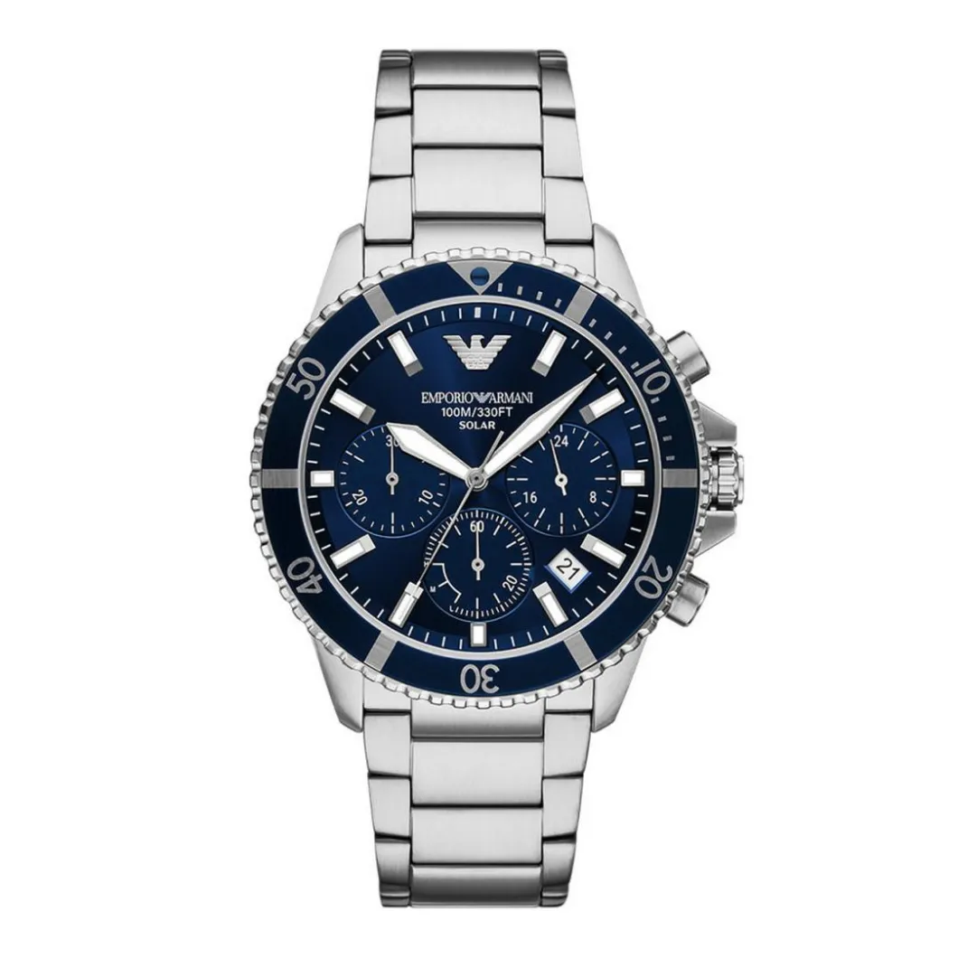 Découvrez l’élégante montre Emporio Armani World Explorer – AR11681, un accessoire masculin et raffiné. Elle arbore un boîtier rond de 44 mm en acier et un bracelet du même coloris, assurant une allure générale harmonieuse. Son affichage analogique, sa résistance à l’eau jusqu’à 100m et son mouvement quartz sont autant d’atouts pour l’utilisateur averti. Son système de fermeture boucle déployante assure une tenue sécurisée au poignet. Une des particularités de cette montre est sa fonctionnalité de montre solaire. Côtoyant l’excellente qualité du verre saphir, elle assure une durabilité et une résistance optimales.