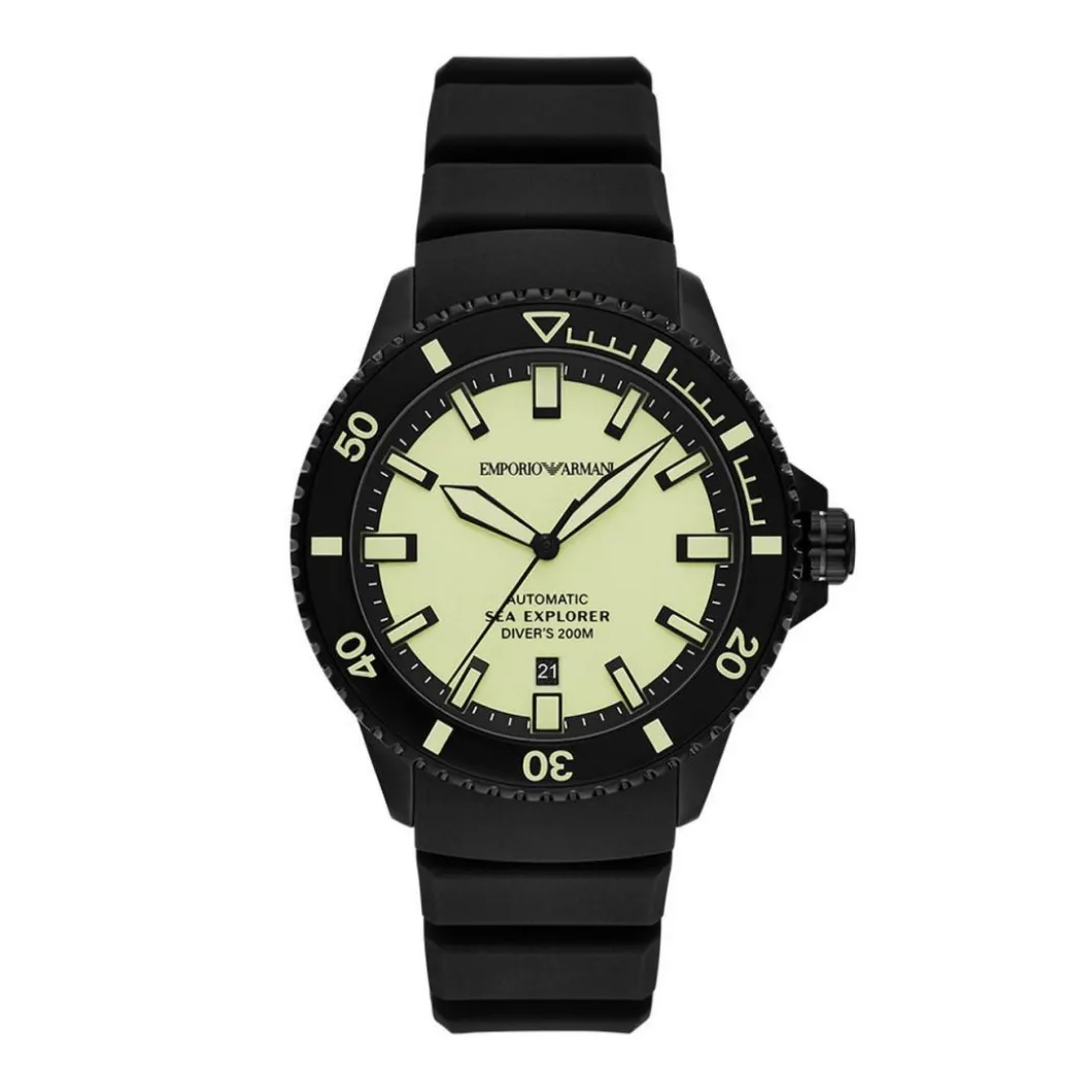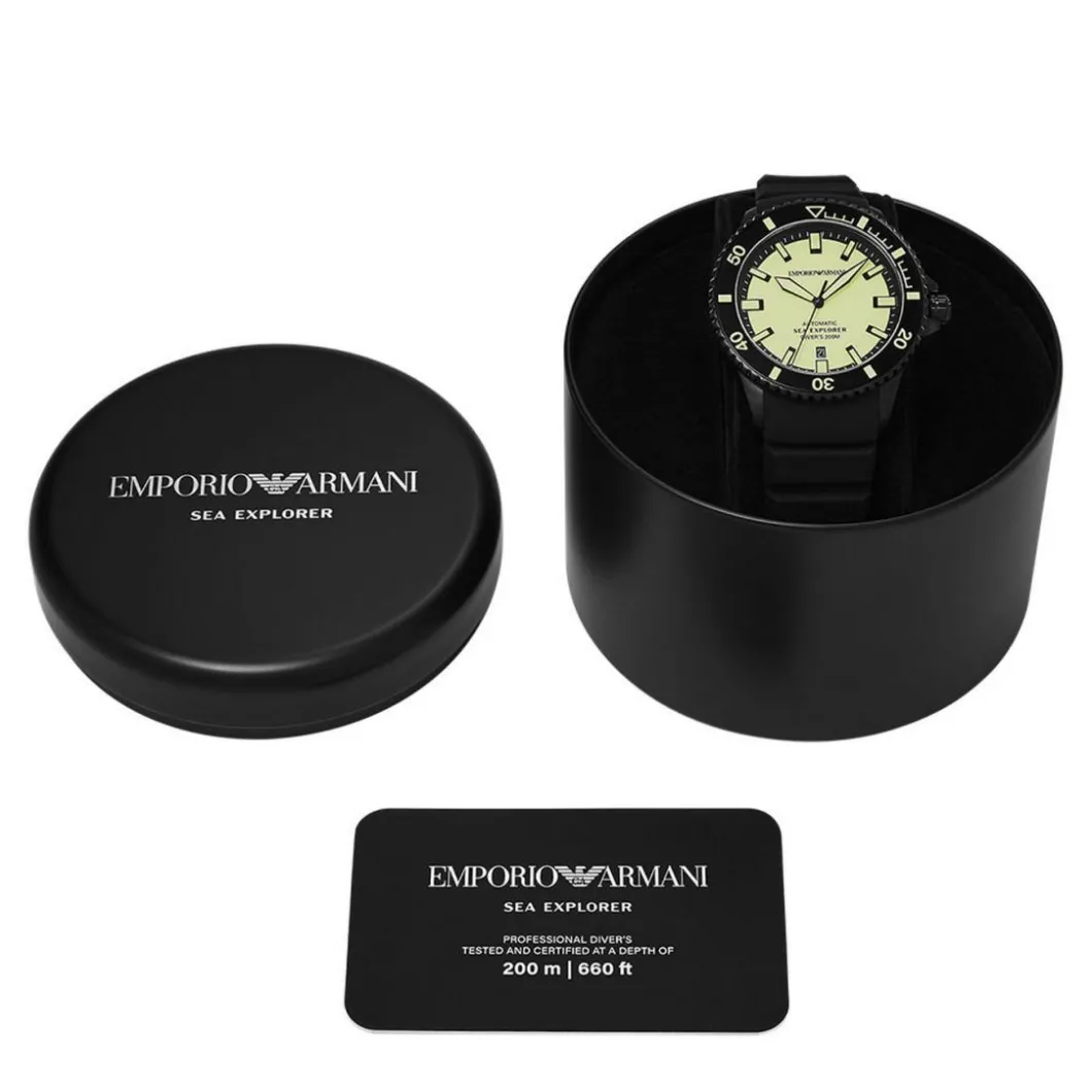 Découvrez l’élégance incarnée avec la montre homme Emporio Armani Sea Explorer AR60085. Son boitier rond en acier robuste affiche une belle couleur noir et un diamètre de 43mm. Le bracelet en silicone noir est confortable et durable, assuré par une boucle simple. Cette pièce dispose d’une étanchéité de 200m (20 ATM), parfaite pour les activités sous-marines. La montre fonctionne grâce à un mouvement automatique et propose un affichage analogique clair. Elle est dotée d’un dateur fonctionnel et son verre en saphir résiste aux rayures pour une utilisation de longue durée. Cette montre de genre masculin est une véritable déclaration de style.