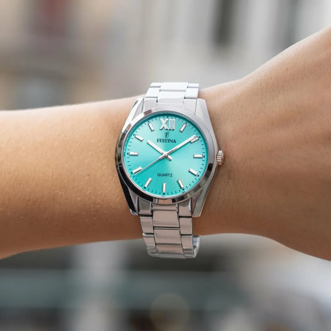 Prenez un nouveau tournant avec la Montre Festina F20622-D mixte. Elle se compose d’un boîtier de forme ronde conçu en acier inoxydable argenté. Ce dernier mesure 37 mm de diamètre, dimension offrant un confort de lecture indéniable. La couleur bleu ciel du cadran et sa finition soleillée donneront davantage de clarté et d’élégance à votre poignet. Lumineuse et moderne, le sublime bracelet argenté est conçu en acier inoxydable.