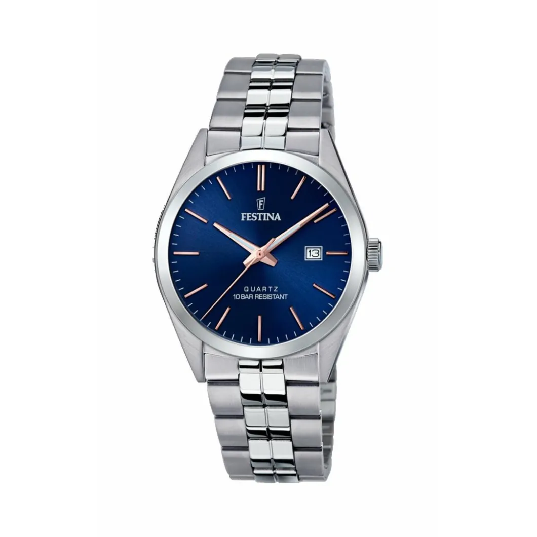 Montre Festina F20437-B – CLASSIQUE Dateur Acier Argenté Cadran Bleu Homme
