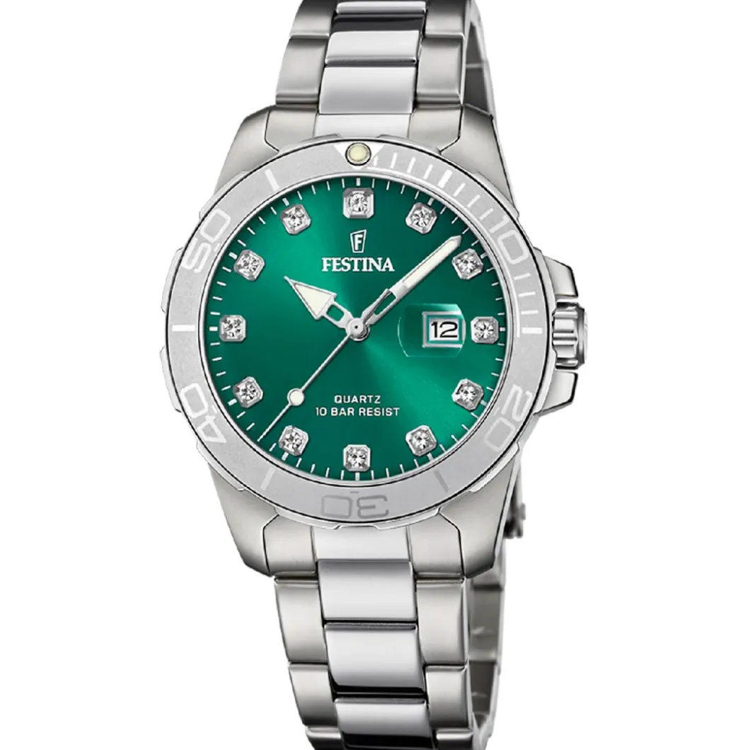 La Festina Boyfriend Collection – F20503-7 est une montre femme élégante dont le bracelet est en acier argenté. Son diamètre boîtier de 35mm ajoute une petite touche de robustesse qui contraste agréablement avec son design délicat. L’affichage est analogique, avec des indicateurs simples et précis, complétés par un dateur pour garder un oeil sur le calendrier. Son boîtier rond est également en acier, assurant une durabilité optimale à votre bijou. Le mouvement de la montre est à quartz, garantissant une mesure précise du temps. Son étanchéité jusqu’à 100 mètres vous permet de la porter même lors de baignades. La fermeture se fait grâce à une boucle déployante, simple d’utilisation et sécurisée. Le verre minéral protège l’affichage des rayures et des chocs. Cette montre est un alliage parfait entre esthétique et fiabilité.