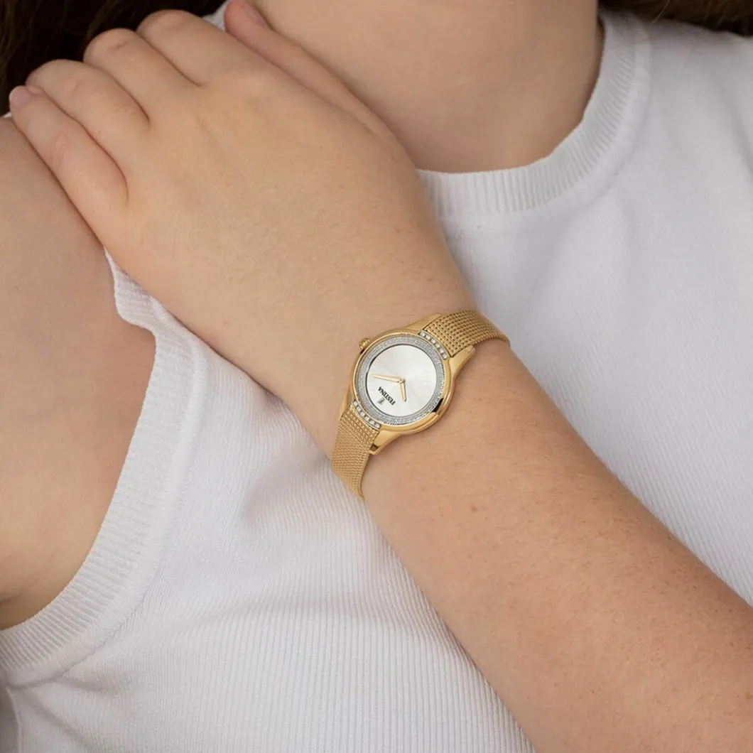 La précision et l’élégance sont au rendez-vous avec cette Montre femme Bracelet Acier Doré F20495-1. Son cadran blanc est livré avec un pourtour incrusté de pierres blanches. La lunette circulaire qui accompagne son boîtier arbore également des reflets brillants.