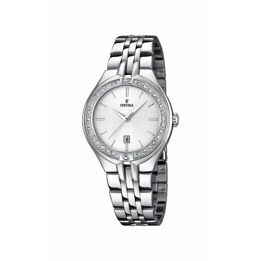 Alliant style et élégance, la montre Festina F16867-1 est une montre glamour pour femmes. Elle est munie d’un cadran blanc serti de cristaux, d’un boîtier et d’un bracelet en acier inoxydable. Cette montre est équipée d’un dateur.