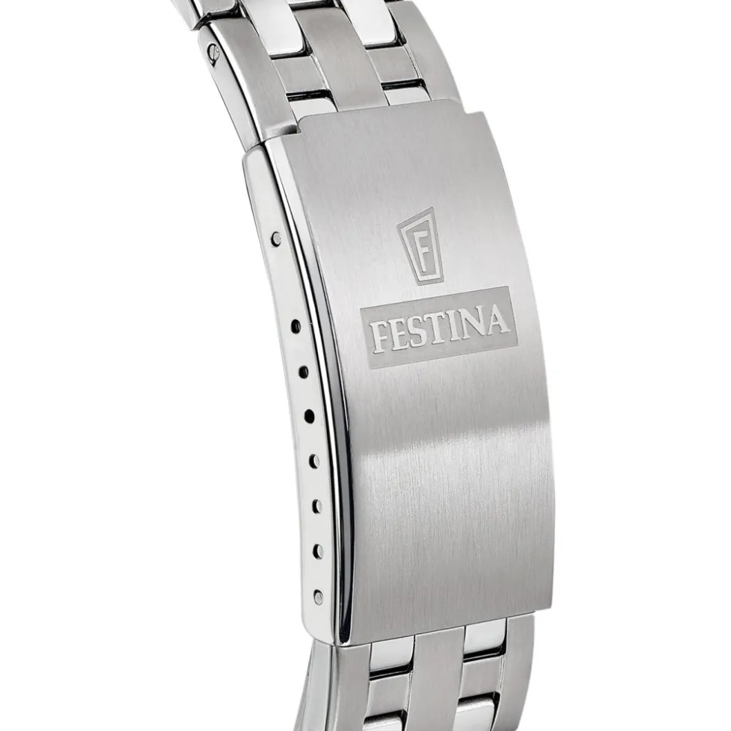 Présentant une construction robuste et un style classique, cette Montre Homme Festina Acero Clasico – F20357-5 de marque Festina affiche un attrait masculin indéniable. Son boitier rond d’un diamètre de 41mm, de couleur argent, est conçu en acier et intègre un verre minéral qui garantit sa longévité. Le bracelet, assorti, est également en acier. Cette montre à mouvement quartz affiche l’heure en format analogique et inclut un dateur. Dotée d’une étanchéité jusqu’à 100 mètres, elle convient pour la natation et la plongée en surface. Le type de fermeture se fait par une boucle déployante, confirmant son orientation vers la fonctionnalité.