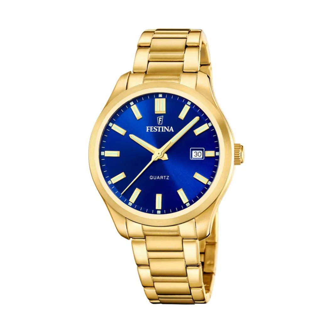 Laissez vous charmer par la montre homme Festina Acero Clasico F20740-2. Dispose d’un affichage analogique et d’un dateur pour une utilisation optimale. Son bracelet et son boitier doré en acier impose un style classique et raffiné. Sa couleur dorée confère une élégance assurée. Le diamètre du boitier est de 42 mm, donnant une parfaite lisibilité de l’heure. Dotée d’une résistance à l’eau allant jusqu’à 5 ATM. Son boitier de forme rond ajoute un esthétisme certain. La montre est actionnée par un mouvement quartz, gage de précision et de fiabilité. La fermeture se fait par une boucle déployante assurant un maintien optimal. Le verre minéral ajoute une résistance supplémentaire aux rayures. Un accessoire idéal pour compléter votre garde-robe.