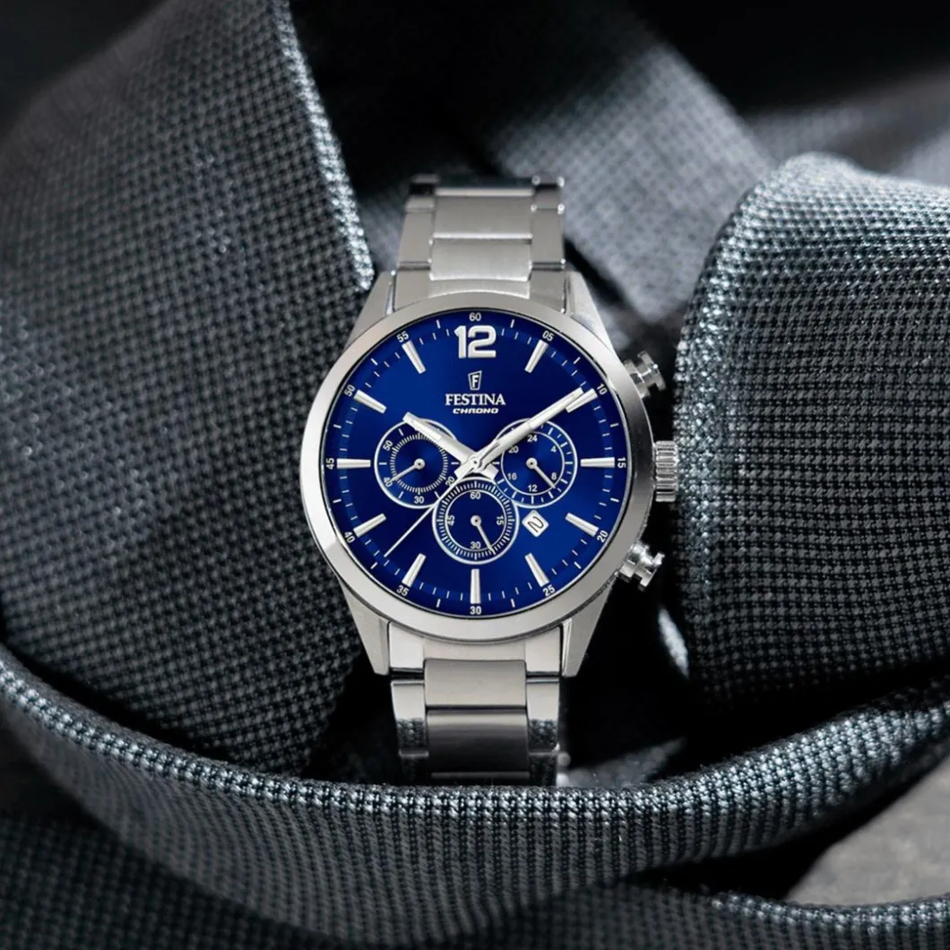 Ne restez pas indifférent avec la Montre Festina F20343-7, une collection Chrono Timeless qui allie sport et élégance. Fabriqué à partir d’acier inoxydable et un verre minéral, elle se veut robuste et résistante. Son cadran bleu avec fonction chrono fait d’elle la pièce maîtresse qui met en avant votre style. Doté d’un affichage analogique et d’un mouvement à quartz, elle est l’accessoire idéale pour vous faire gagner confiance en vous.