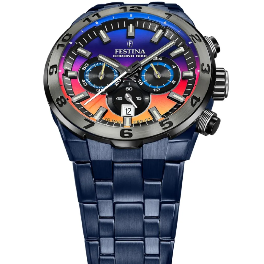 Voici la magnifique Montre Homme Festina Special Editions – F20709-1. Cette superbe montre à la fois classique et moderne est analogique. Elle dispose d’un boîtier rond en acier de 45 mm, de couleur bleu. Son bracelet est également en acier et de la même couleur intense. La montre est étanche jusqu’à 100 m (soit 10 ATM), ce qui vous permet de la porter même lorsque vous nagez. En outre, elle est dotée d’un chronographe, ajoutant une fonctionnalité pratique à son design élégant. La montre est alimentée par un mouvement à quartz, synonyme de précision et de fiabilité. Elle est dotée d’une boucle déployante pour une fermeture sûre et le verre est en minéral, résistant aux rayures et aux chocs.