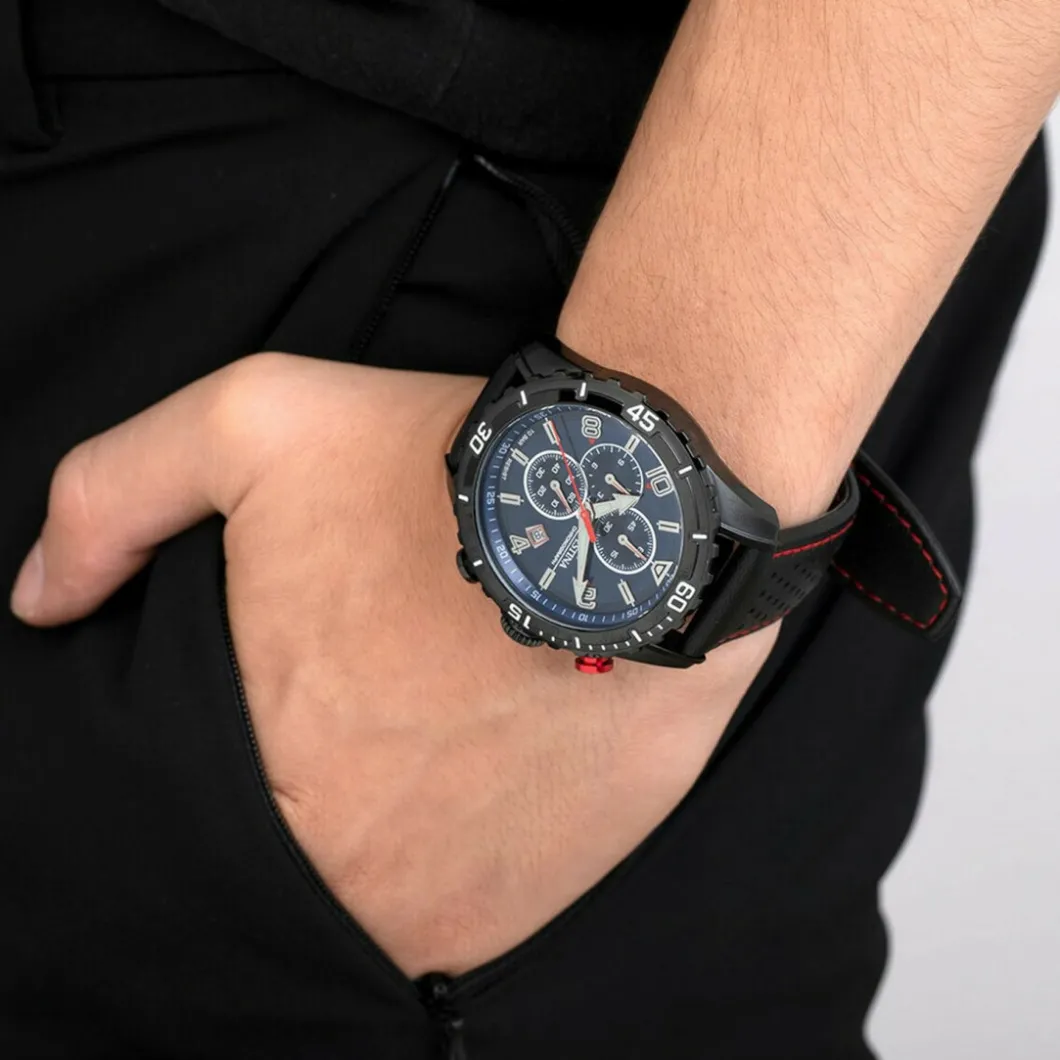 En plus d’être utile, cette Montre homme Bracelet Cuir Noir F20519-2 affirme votre personnalité. Elle comprend un cadran bleu, un boîtier rond noir, des boutons de réglage et un bracelet en cuir.