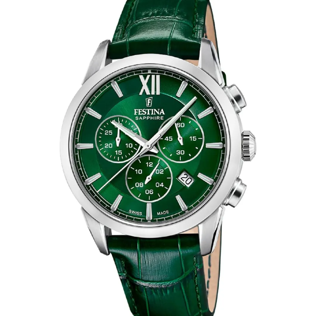 Sublime Montre Homme Festina Swiss Made Chrono – F20041-3. Le bracelet en cuir noir apporte une élégance certaine à cette pièce d’excellence. Le boîtier rond en acier, d’un diamètre de 41 mm, confère à l’ensemble une robustesse admirable. L’étanchéité est assurée jusqu’à 100 mètres. Des fonctionnalités très pratiques sont intégrées : un chronographe et un dateur. L’affichage se fait de manière analogique sous un verre en saphir de qualité supérieure. Le mouvement à quartz assure une précision remarquable. La fermeture se fait par une simple boucle pour un maximum de simplicité. Le tout est présenté dans une splendide couleur boîtier argent. Ce produit est spécifiquement destiné aux hommes à la recherche d’un accessoire raffiné et fonctionnel.