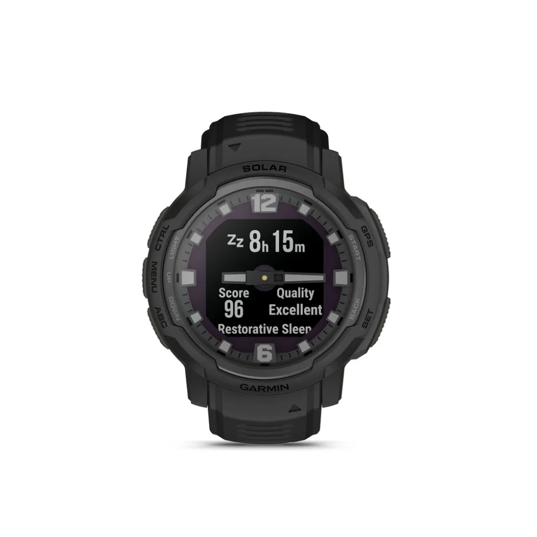VERRE SOLAIRE : Instinct Crossover offre jusqu’à 28 jours en mode connectée, jusqu’à 25 heures en mode GPS et jusqu’à 71 jours en mode analogique. Instinct Crossover Solar offre une autonomie infinie en mode analogique, jusqu’à 70 jours en mode connectée1 et jusqu’à 31 heures en mode GPS3.