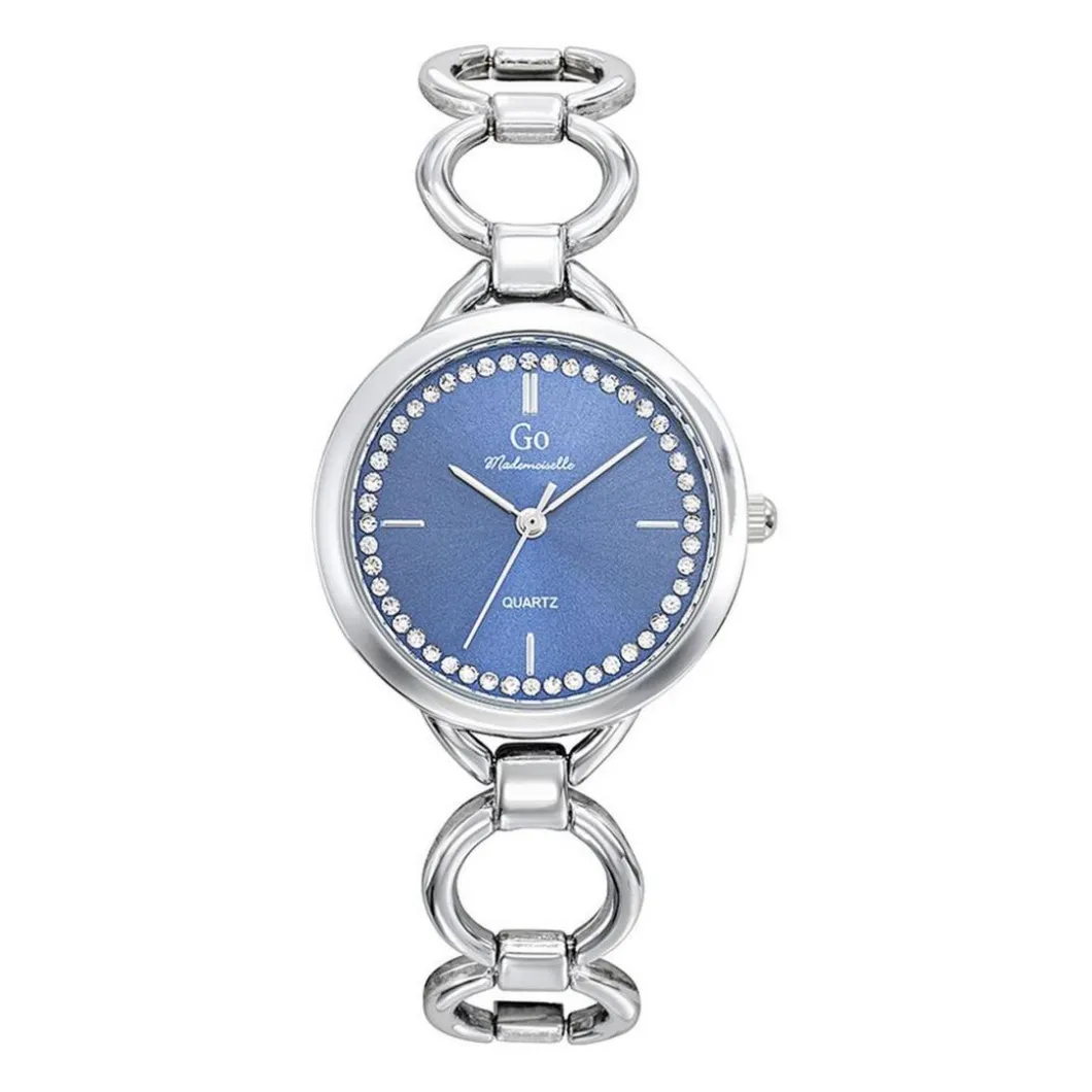 Parcourez l’élégance lumineuse avec la montre Femme de la marque Go Mademoiselle. Le boitier rond de 30 mm en acier est orné d’un fini argent, également repris sur le bracelet en acier délicatement articulé. Avec une étanchéité de 30 m, cette montre résistera aux éclaboussures du quotidien. Son affichage analogique est régi par un mouvement de quartz fiable. La boucle simple garantit un ajustement confortable. Le verre minéral durable protège le cadran et ajoute une touche de brillance sophistiquée. Révélez votre chic sans effort avec cette pièce intemporelle.