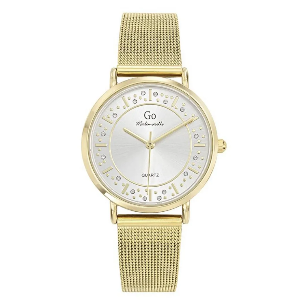 Cette Montre Femme Go Mademoiselle Eclats Etoiles – 695591 présente un boitier rond en acier de 34 mm de diamètre, de couleur doré. Son affichage est de type analogique. Le bracelet, de même couleur dorée, est du même matériau que le boitier et se ferme avec une boucle simple pour un maintien solide. Le mouvement est à quartz, promettant une précision inégalée. Comme indiqué par son appellation Eclats Etoiles, des motifs d’étoiles sont subtilement intégrés dans le design de ce bijou. Son étanchéité certifiée à 30m (3 ATM) garantit une protection contre une immersion accidentelle. Enfin, son verre minéral offre une résistance optimale aux rayures.