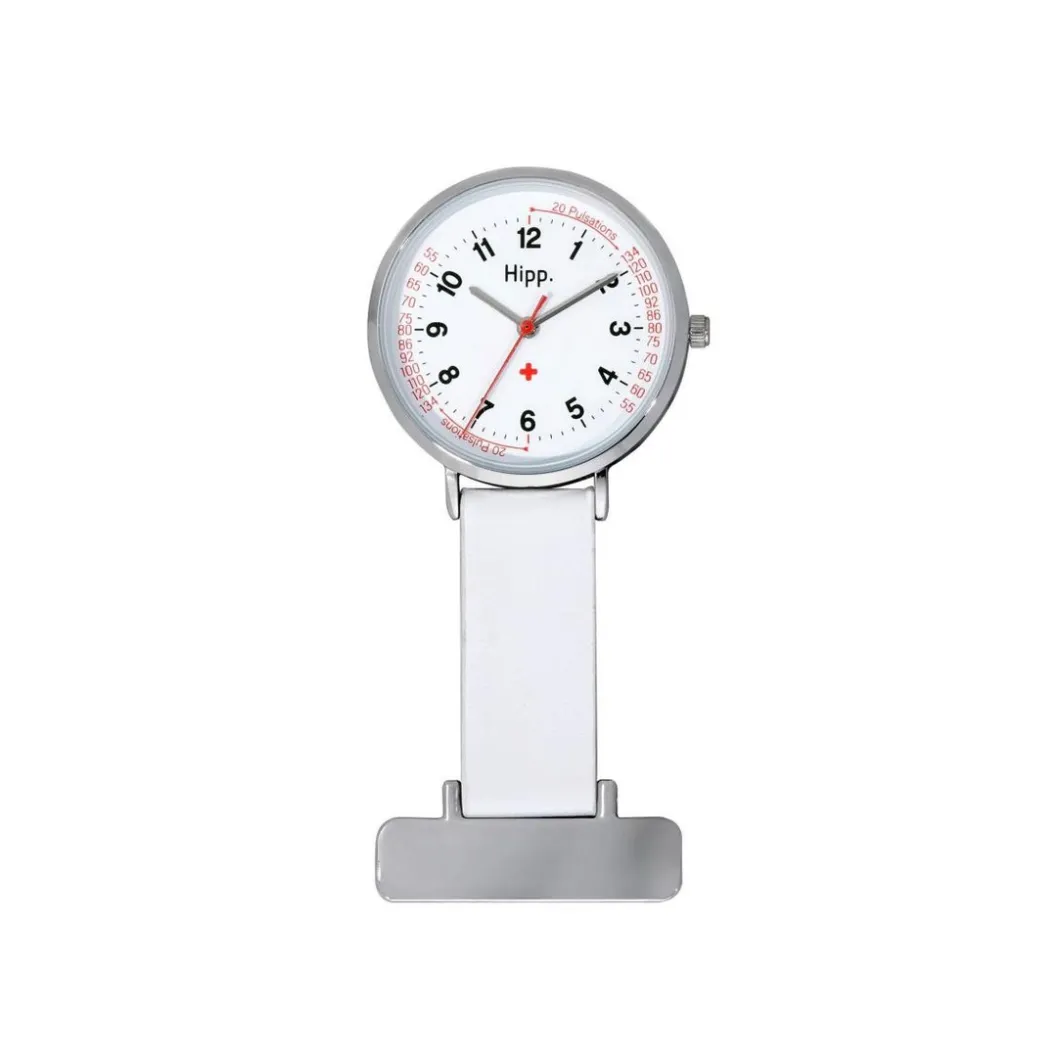 Cette Montre Femme H30004 – Hipp Beat met en valeur un cadran blanc analogique équipé d’un compteur de pulsations. Elle possède une broche comme accroche.