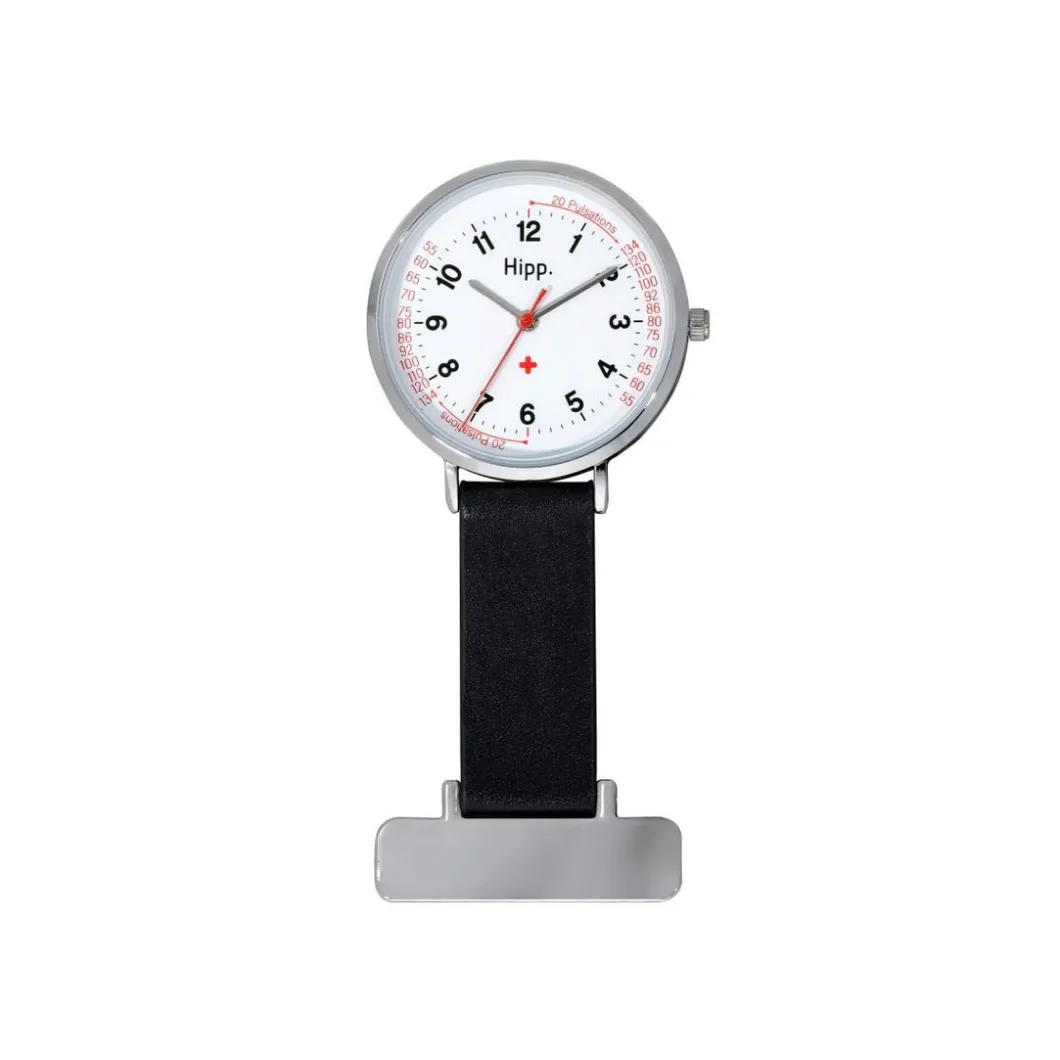 Parée d’une broche, cette Montre H30003 Hipp Beat possède un boîtier en métal renfermant un cadran blanc doté d’un compteur de pulsations.