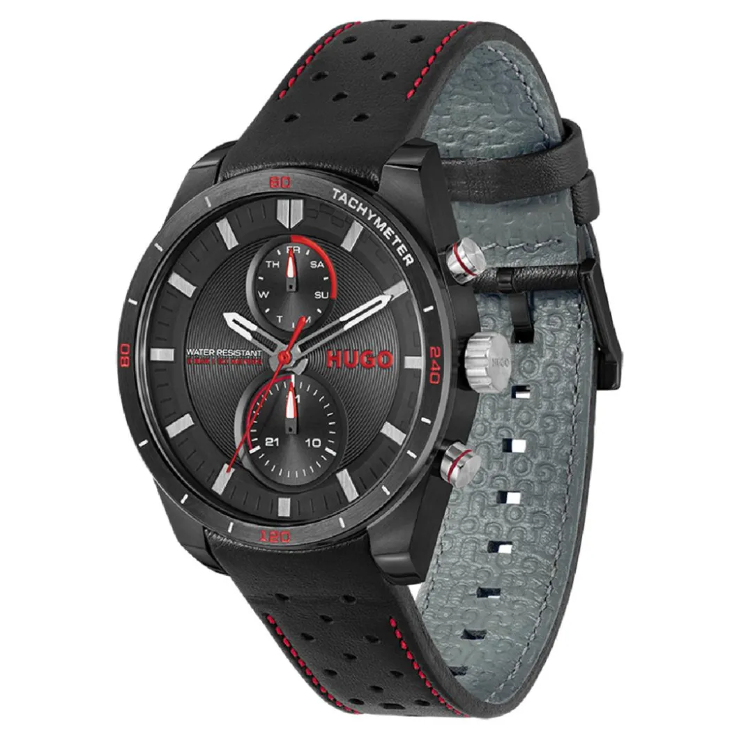 Découvrez le style sophistiqué de la montre homme Hugo #Fast 1530370. Un luxe incarné dans l’allure brute du noir de son bracelet en cuir, du boîtier rond et du cadran. Le boîtier en acier de 44 mm révèle une finition minutieuse avec un verre minéral résistant. Son affichage analogique et multifonctions apporte une fonctionnalité accrue, tandis que le mouvement à quartz assure une précision de l’heure irréprochable. Cette montre pour homme résiste à l’eau jusqu’à 30 mètres et se ferme facilement grâce à une boucle simple. Optez pour l’élégance discrète avec cette pièce intemporelle de l’iconique marque Hugo.