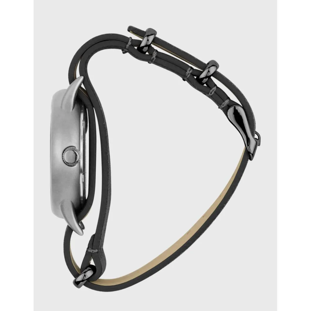 Elle revient en laiton plaqué gris titane et sablé (antireflet) afin que votre présence au cœur de la forêt reste inaperçue. Son cadran a été re-designé, dans l’optique de rester toujours plus proche des origines du modèle avec ses index disposés en chemin de fer. Quant aux aiguilles, elles conservent leur forme glaives typique des montres militaires. Nous leur avons adjoint une trotteuse lollipop, pour faire bonne mesure.