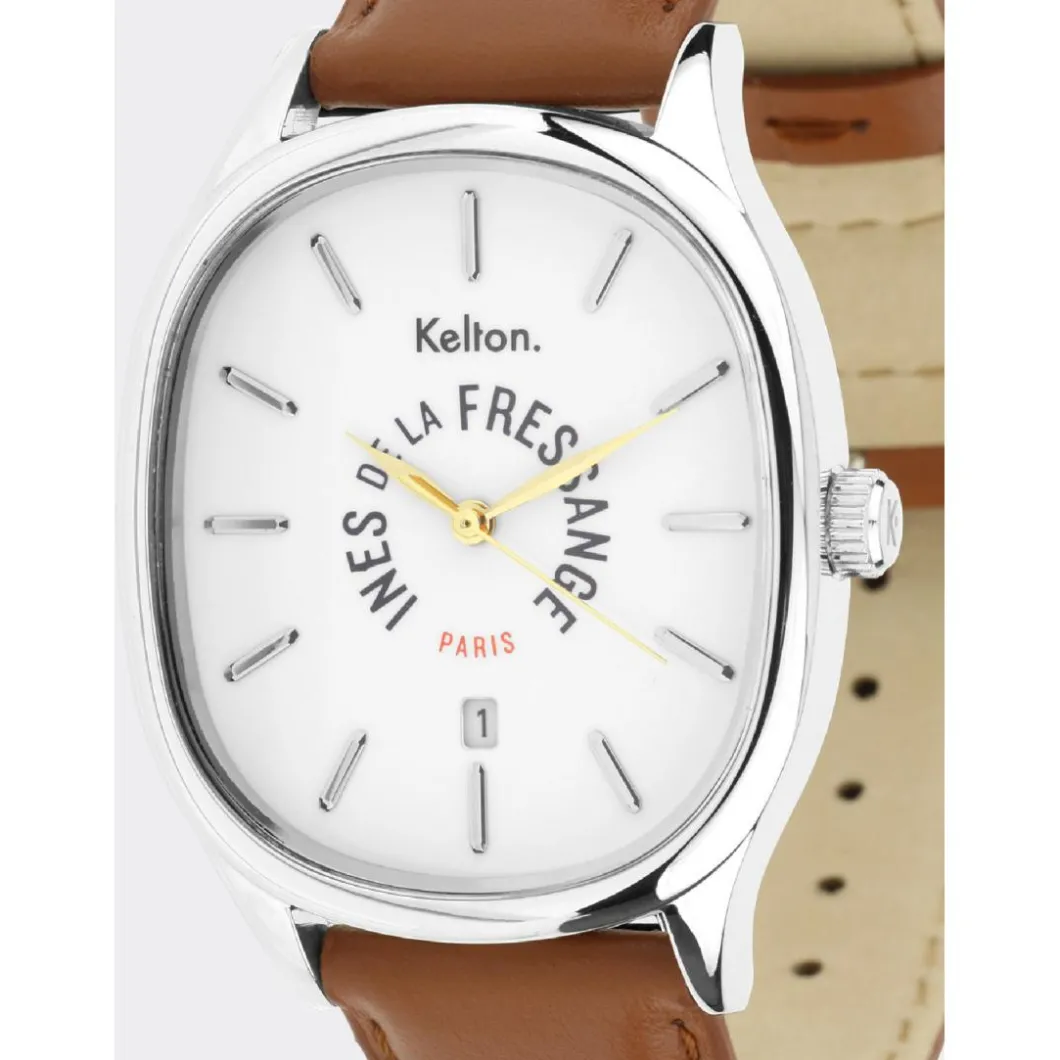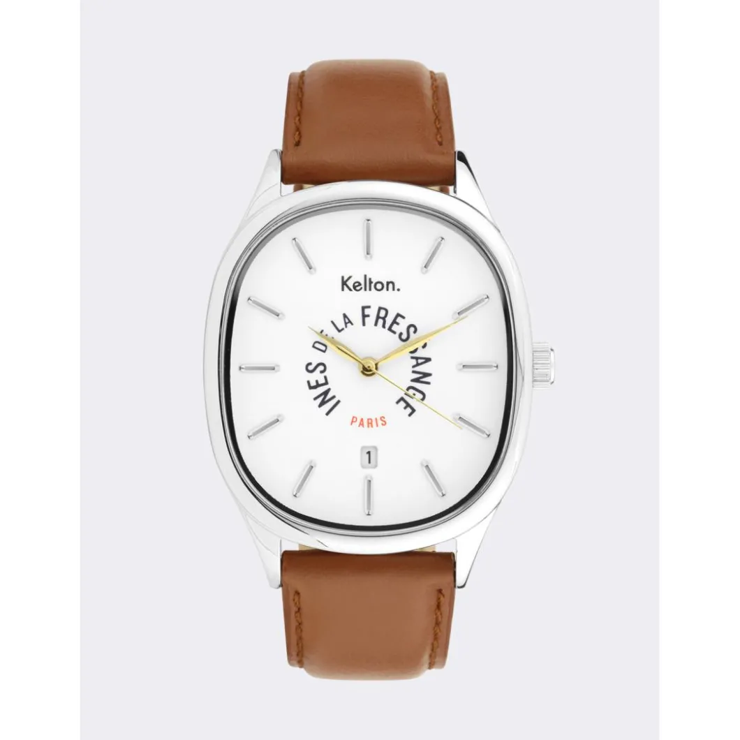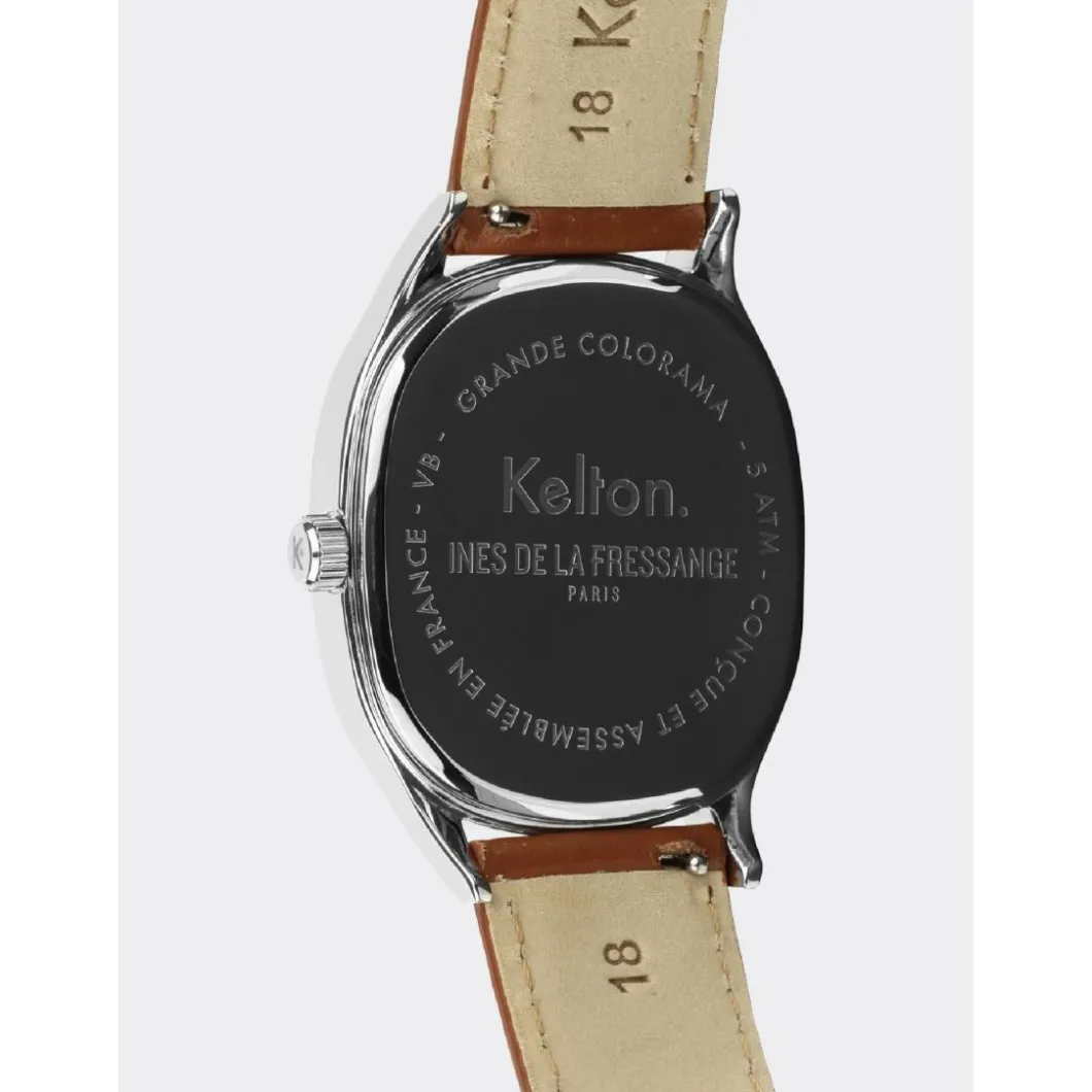 Cette Montre Femme Kelton Grande Colorama Kelton x Ines de la Fressange Paris – 9125432 Camel est un véritable bijou de sophistication et d’élégance. Le boîtier est en acier argenté et offre une forme tonneau distincte qui se marie parfaitement avec le bracelet en cuir marron. Le cadran de 40mm affiche des aiguilles et des indexes délicatement conçus. Il est protégé par un verre minéral résistant. Grâce à son étanchéité de 50 m (5 ATM), elle peut affronter les éclaboussures quotidiennes. Propulsée par un mouvement à quartz, cette montre garantit une précision inégalée. La fermeture sécurisée par une boucle simple facilite son port et offre un confort optimal.