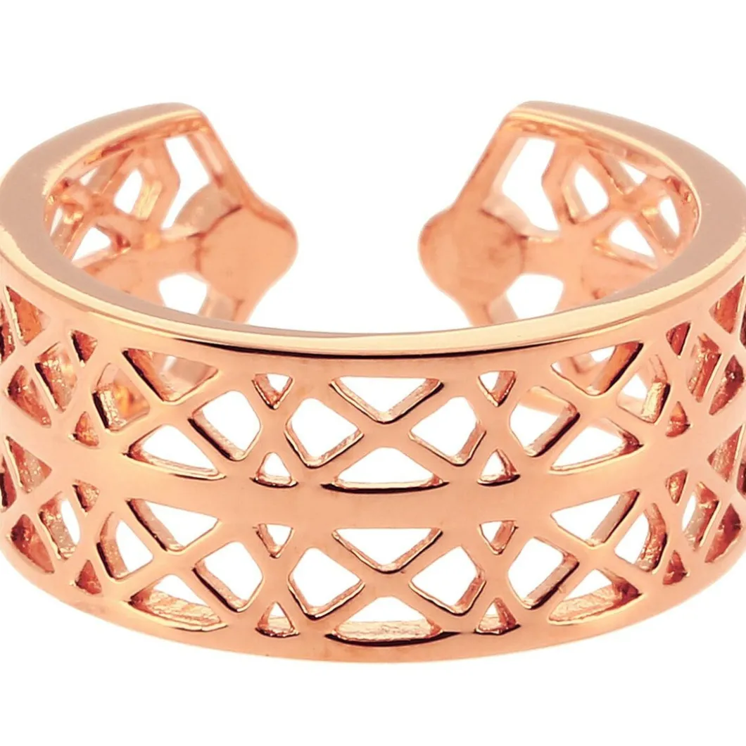 Accessoirisez vos tenues d’une touche tendance avec la magnifique Bague BRSL0439-ROSEGOLD. Issue de la collection Mia, elle tient son inspiration du mouvement Art déco et arbore un design entièrement ajouré. Large, elle habillera parfaitement votre main. Ajustez la à votre convenance grâce à son ouverture !