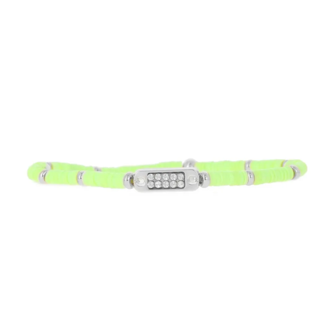 Bracelet Les Interchangeables A58658 – Mini Plaque 2 Rangs Perle Gomme Vert Fluo Femme