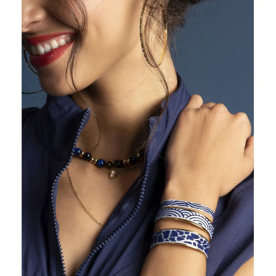 Le Bracelet Les Interchangeables Femme est ce qui vous manque pour ajouter plus d’originalité à votre look. Il habille avec élégance votre poignet avec son anneau imposant arborant un ruban bleu au motif girafe. Simple et tendance, il accompagne à merveille toutes vos tenues.