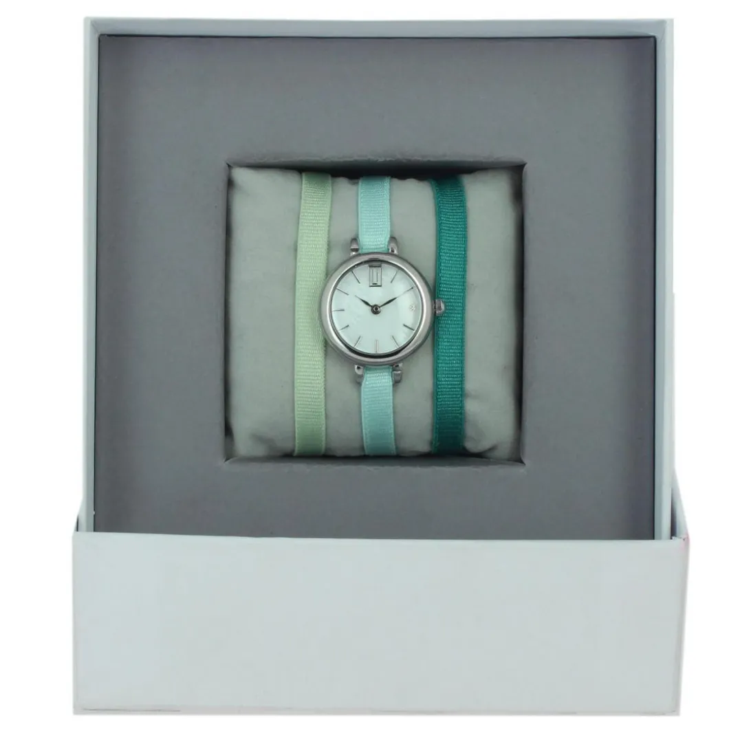 Montre femme Les Interchangeables Coffret Montre Ruban Satin Strech A56849 – Bracelet Tissu Vert clair Bleu ciel