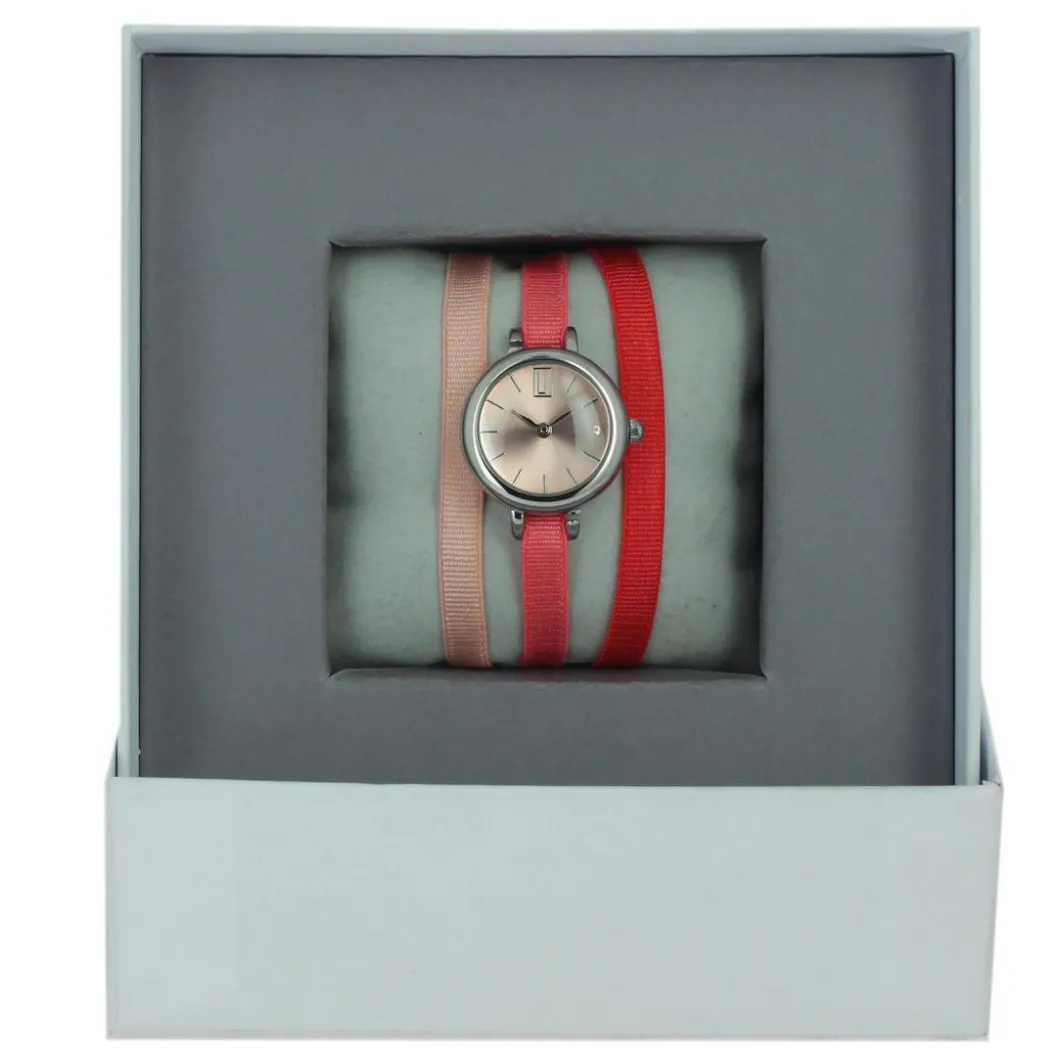 Montre femme Les Interchangeables Coffret Montre Ruban Satin Strech A56885 – Bracelet Tissu Corail Clair Rose