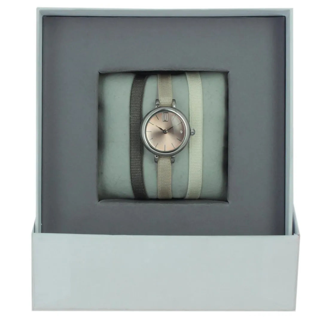Montre femme Les Interchangeables Coffret Montre Ruban Satin Strech A56891 – Bracelet Tissu Marron Beige