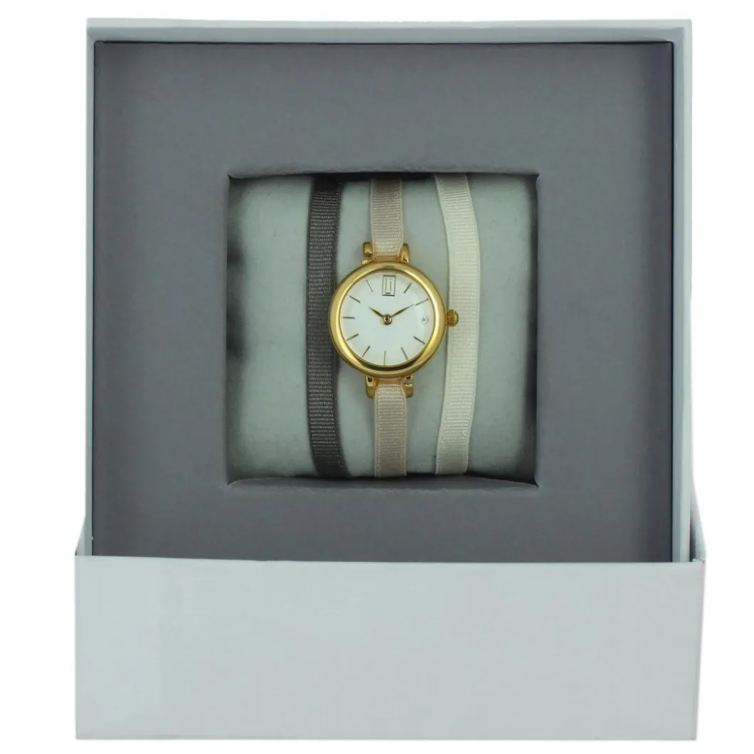 Montre femme Les Interchangeables Coffret Montre Ruban Satin Strech A56969 – Bracelet Tissu Marron Beige