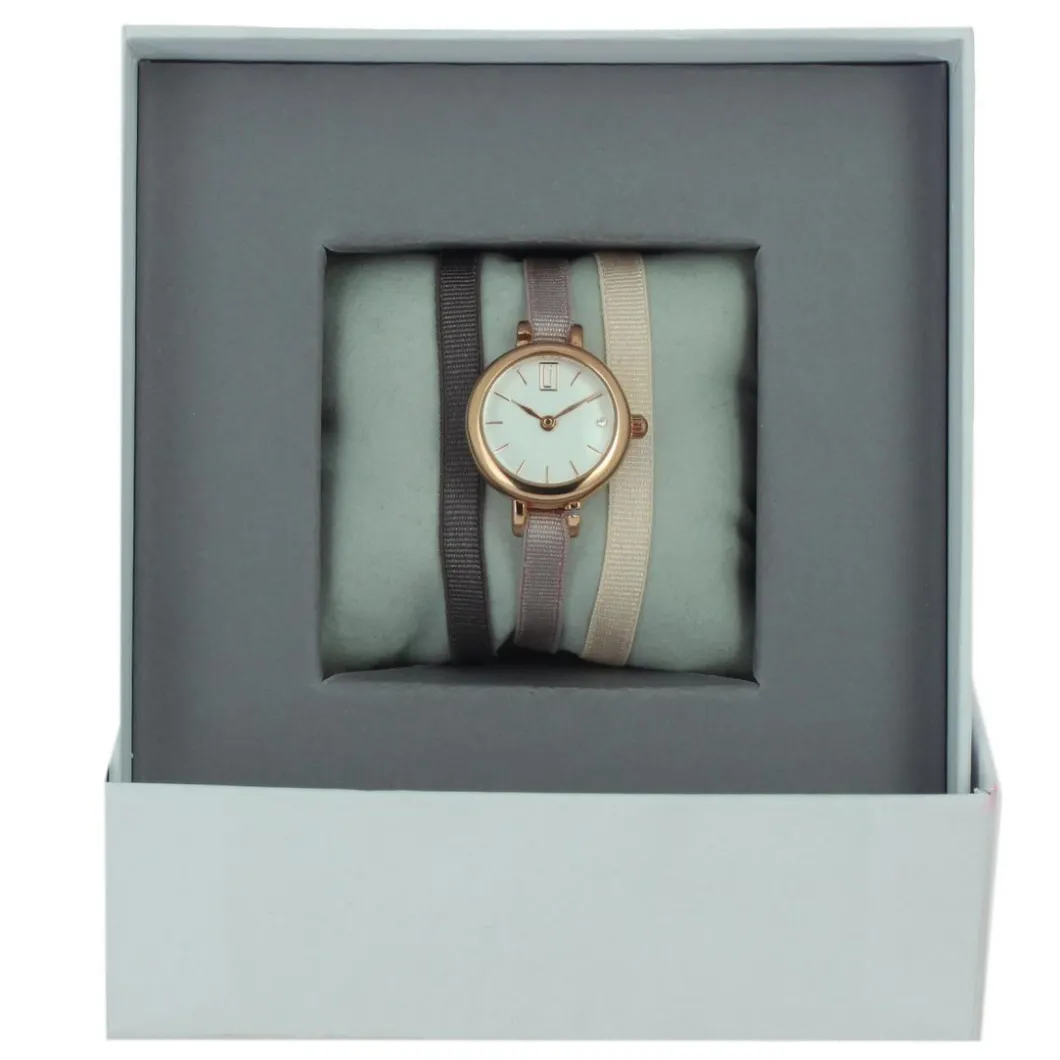 Montre femme Les Interchangeables Coffret Montre Ruban Satin Strech A56986 – Bracelet Tissu Marron beige
