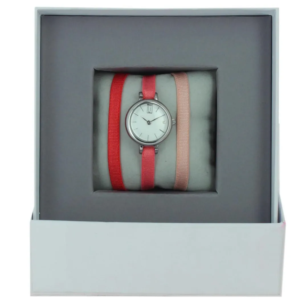 Montre femme Les Interchangeables Coffret Montre Ruban Satin Strech A56995 – Bracelet Tissu Rose Marron