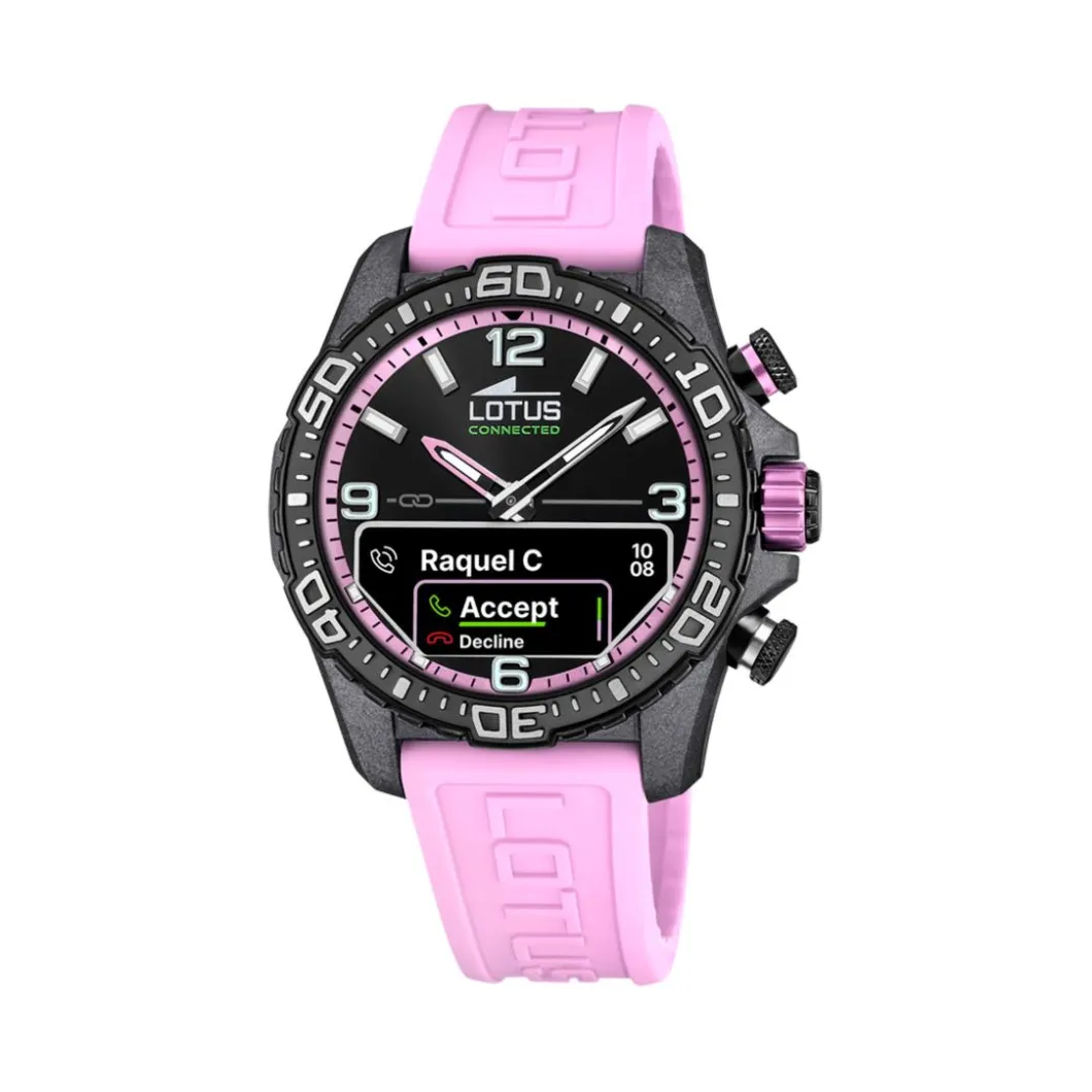 Découvrez la montre connectée mixte Lotus Connected – L20000-9 au bracelet en résine rose. De la marque Lotus, cette montre allie élégance et technologie de pointe. Elle se caractérise par un boitier de couleur noire et un diamètre de 45 mm. Façonné en titane, le boitier rond ajoute une note d’élégance au produit. Sa résistance à l’eau, estimée à 30m (3 ATM), permet son utilisation en milieu aquatique peu profond. Le mouvement quartz et l’affichage binaire garantissent une précision impeccable. Le bracelet rose ajoute une touche d’originalité. Enfin, la simplicité de sa boucle et la robustesse de son verre saphir complètent cet ensemble.