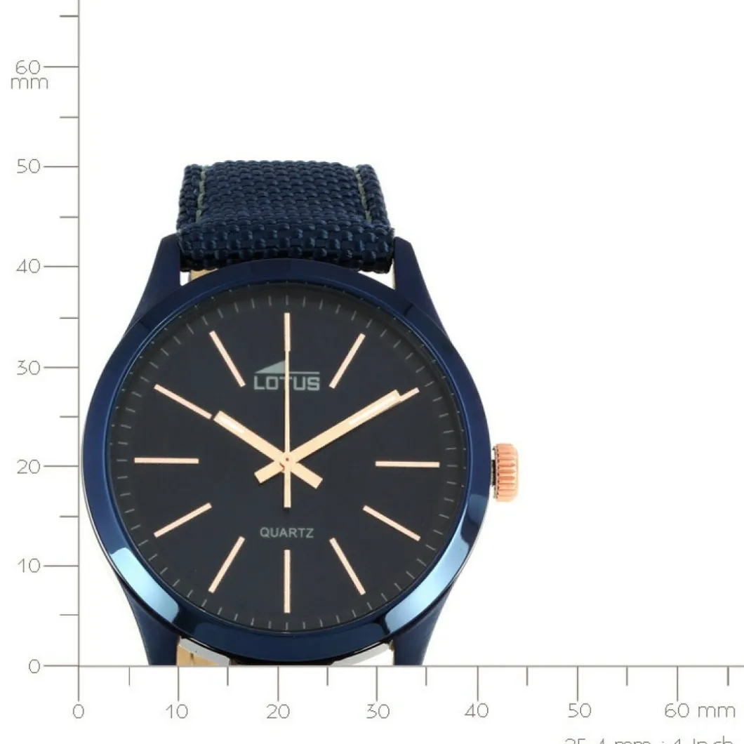 Montre Lotus L18166-2 avec bracelet cuir et cadran bleu, boîtier en acier doré.