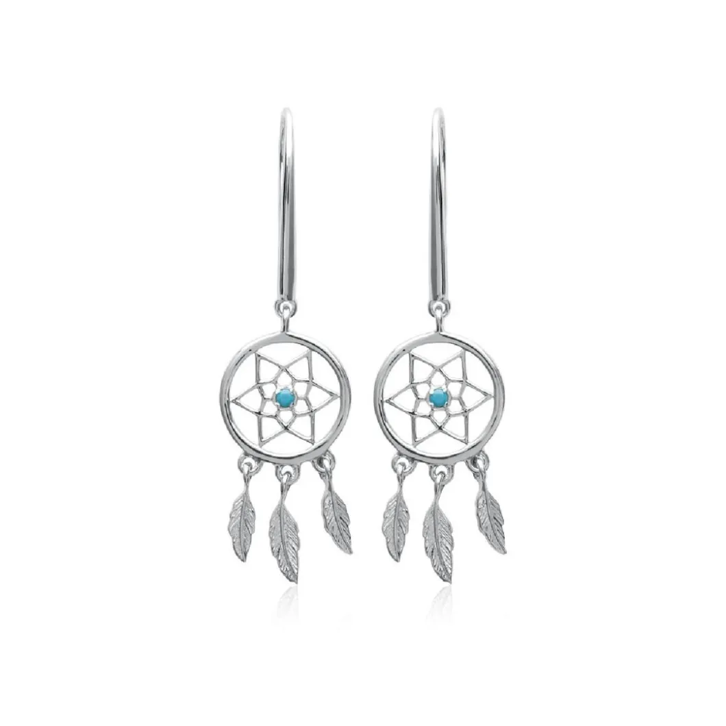 Avec ces Pendantes Z530530 de chez Maison de la Bijouterie, vous allez attirer l’attention de tous. Elles surprennent par leur forme d’attrape-rêves qui mêlent pierre turquoise et plumes déployées argentées.