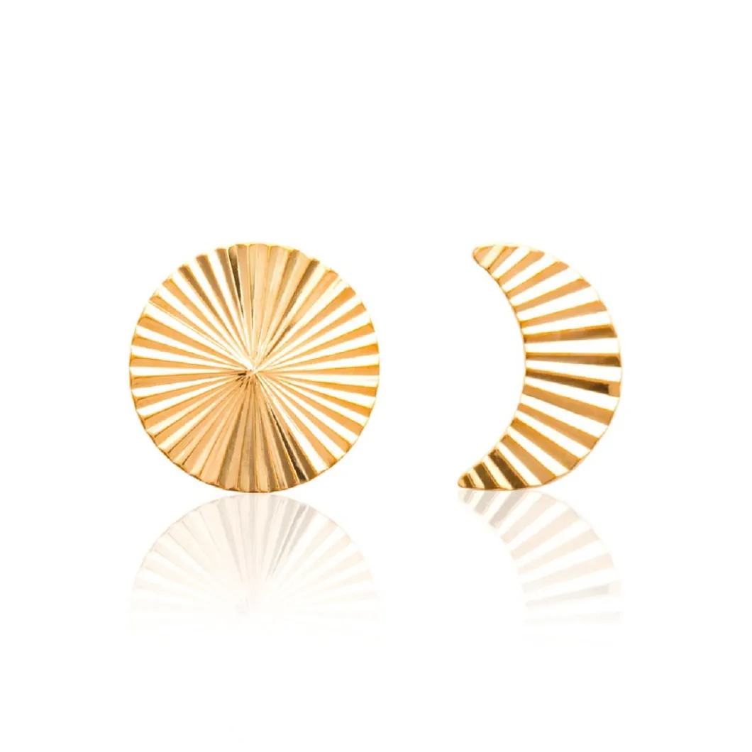 Créez un style original et tendance avec ces Boucles d’oreilles Y54U300 créées par Maison de la Bijouterie. Elles se composent d’un duo de lune et de soleil striés tout en laiton plaqué or 18 carats.