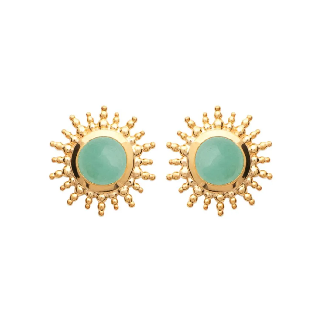 Ces Boucles d’oreilles Y56YZ50 Maison de la Bijouterie séduisent dès le premier regard. Elles arborent des clous d’oreilles soleil inca doré serties d’une aventurine verte.