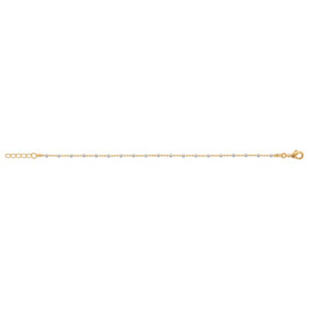Pour celles en quête de bijou féminin et délicat, ce Bracelet Femme YU0U3VZV semble fait pour vous. Il propose une chaine à mailles boules dorées et des perles en émail blanc.