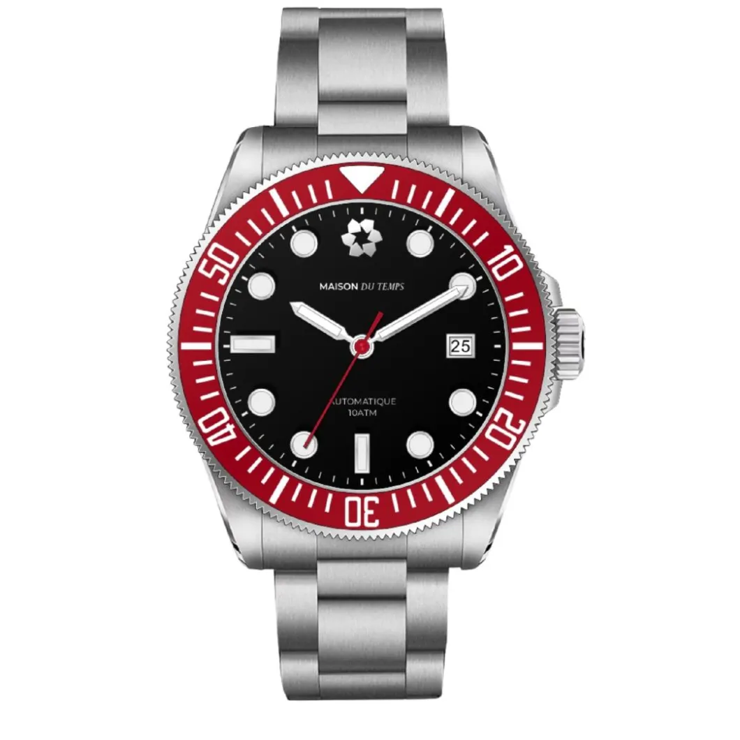 La MTSigma est la première montre de plongée proposée par MaisonDuTemps. Dotée d’une lunette tournante unidirectionnelle rouge, d’une étanchéité jusqu’à 100 mètres et d’un fond ouvert laissant entrevoir un mécanisme automatique Miyota, découvrez la montre de plongée parfaite pour enrichir votre collection.