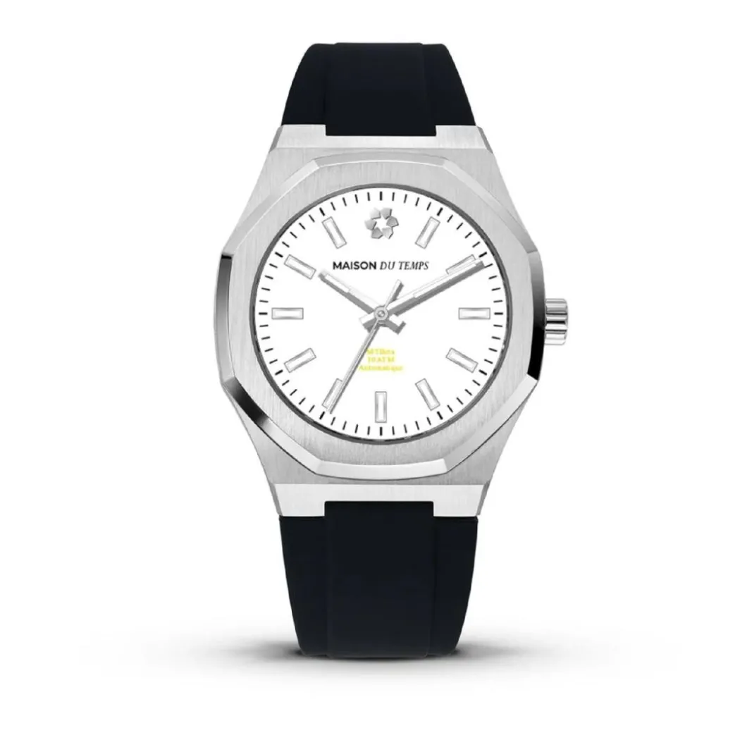 La Montre Homme MaisonDuTemps MTBeta 2.0 Blanc Noir de chez Maison Du Temps capture l’essence d’une sophistication contemporaine. Son boîtier argenté en acier de 42 mm abrite un mécanisme automatisé et un affichage analogique, encadré par un verre minéral robuste. Le boîtier rond se marie parfaitement avec le bracelet noir, chic et confortable, en silicone. La montre est résistante à l’eau jusqu’à 100 mètres et se ferme à l’aide d’une boucle simple. Les contrastes entre le blanc et le noir apportent une touche d’élégance, faisant de cet accessoire un choix parfait pour les occasions formelles et décontractées.
