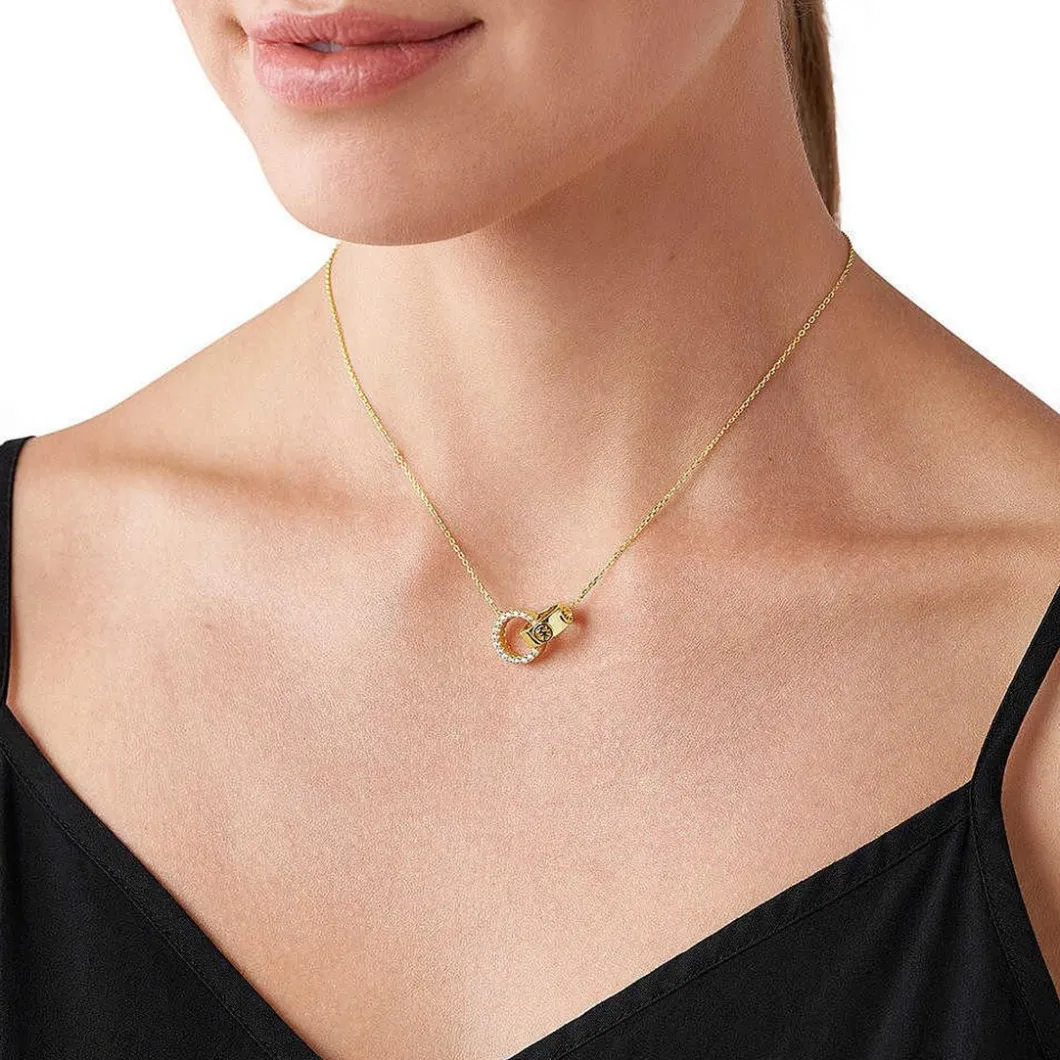 Ce Collier Femme Michael Kors Bijoux – Argent Doré se caratérise par l’éclat de ses deux anneaux entrelacés. L’un de ces derniers se trouve pavé de strass.