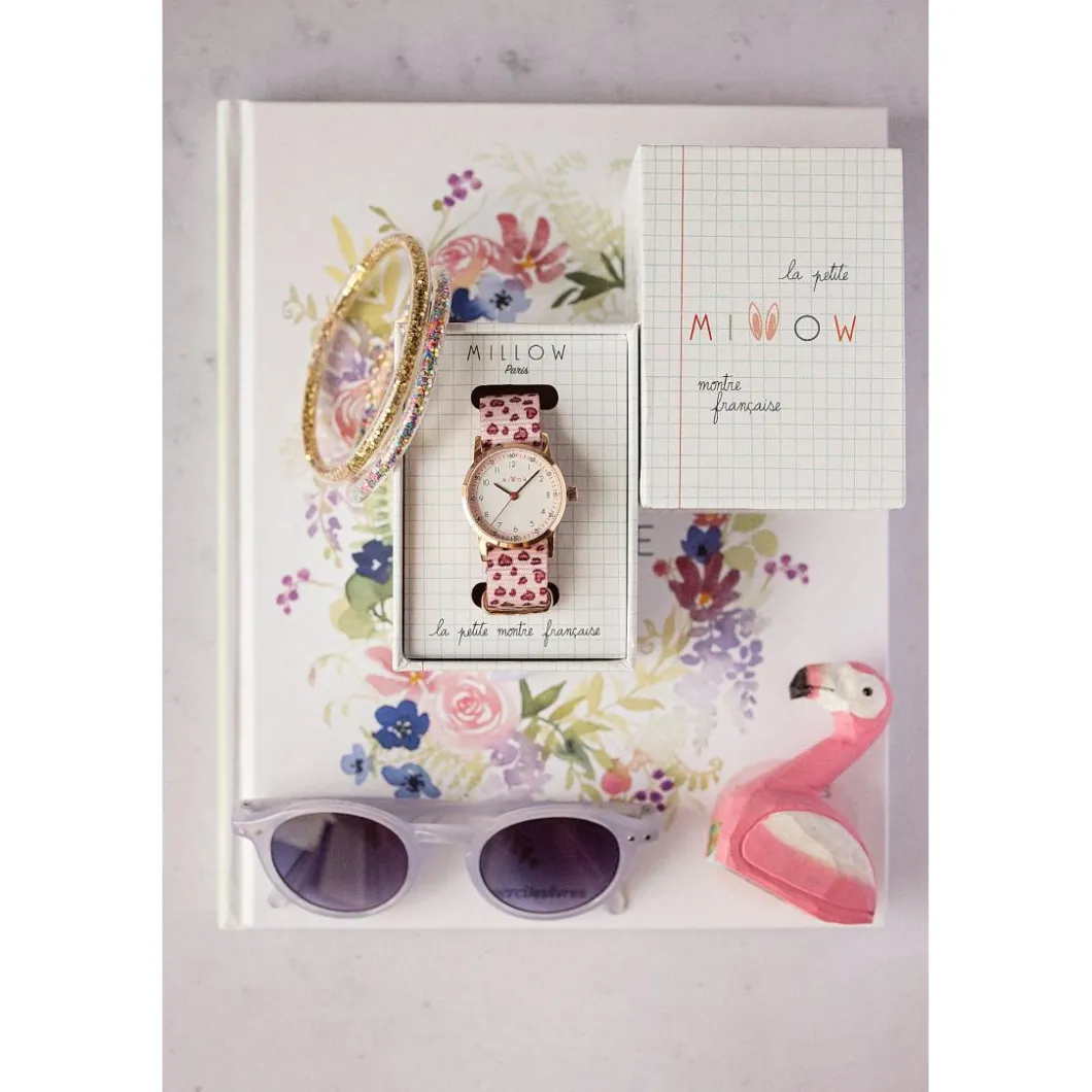 La Montre fille Millow Paris Classique – MIL3112 est un mélange harmonieux d’élégance et de fonctionnalité. Dotée d’un mouvement quartz et d’un affichage analogique, elle est conçue pour offrir une précision inégalée. Son boîtier rond en acier de 28 mm ajoute une touche de sophistication, tandis que le bracelet en nylon de couleur léopard assure un confort absolu. Enfin, son verre minéral offre une solidité à toute épreuve. Type de fermeture: boucle simple. Une belle pièce pour une fille chic et branchée.