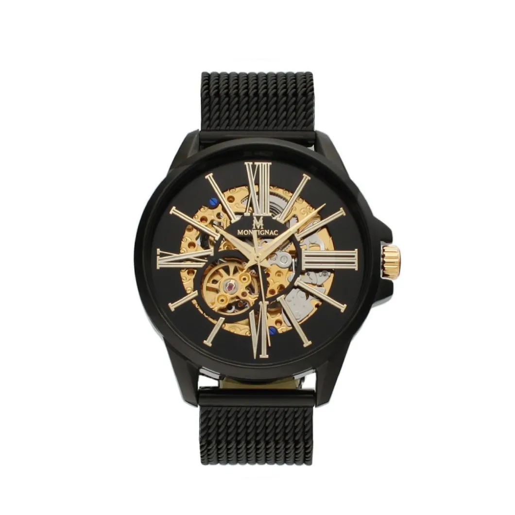 Optez pour cette Montre Montignac Homme pour embellir votre poignet. Son cadran attire l’attention avec ses index imposants et son mécanisme doré qui contraste à merveille à l’ensemble.