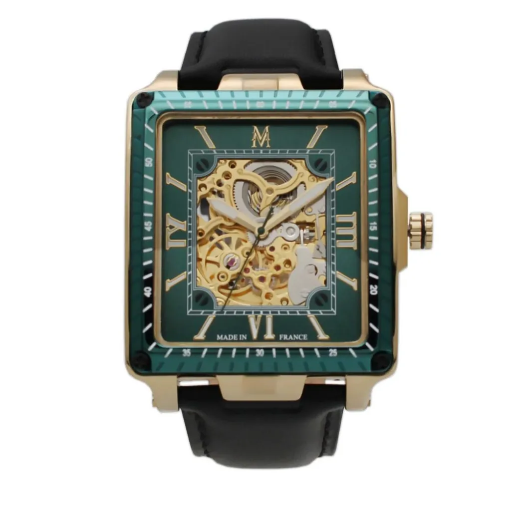 Autour de quatre formes puissantes qui puisent leur inspiration aussi bien dans les canons horlogers séculaires, que dans les marques d’avant-garde, Montignac offre une alchimie unique où l’automatique est maître. Un modèle automatique en 5 ou 10 ATM à couronne vissée à un prix aussi accessible est une opportunité pour le consommateur. La puissance du design s’exprime au travers d’une architecture moderne. Là, un cadran classique conjugue l’or rose au noir profond, créant une tension esthétique à nulle autre pareille. Ailleurs, le cadran s’efface pour dévoiler la technicité du mouvement automatique, dont chaque rouage peut être admiré dans ses moindres détails. Les tons de l’or rose se reflètent dans des dégradés de bleu, vert, noir ou gris. Au gré de compositions issues du bureau d’études de Montignac, chaque personnalité s’affirmera en fonction d’un style unique, où la quête de performance mécanique, s’alliant à un design puissant.