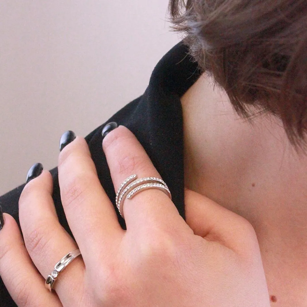 Sublimez votre main avec cette Bague Spiral Finition Argentée. Avec sa forme unique et ses pierres fines brillantes, elle accentue à merveille votre originalité. Grâce à sa finition plaquée rhodium, elle garde tout son éclat pendant des années.